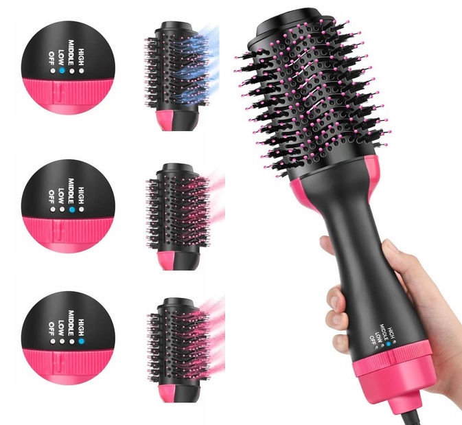 сушилка с кистью для моделирования непослушных и вьющихся волос. Благодаря этому ваши волосы будут сглажены и в то же время будут иметь большой объем! Парикмахер часто моделирует волосы его клиентов с кистью и сушилкой, потому что это приносит отличные результаты. Тем не менее, сами трудно выполнить эту процедуру дома. К счастью, сушилка и кисть пришли с помощью, что облегчает повседневную жизнь