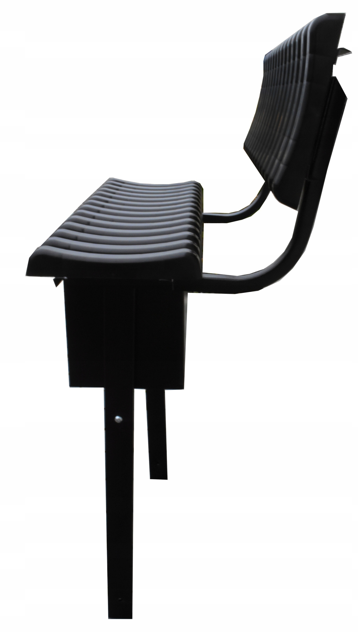 Скамейка имеет 2 ножки, что делает ее очень устойчивой и прочной, разъемы приварены к нижняя часть ножек, которые после бетонирования дополнительно защищают скамью от вырывания.