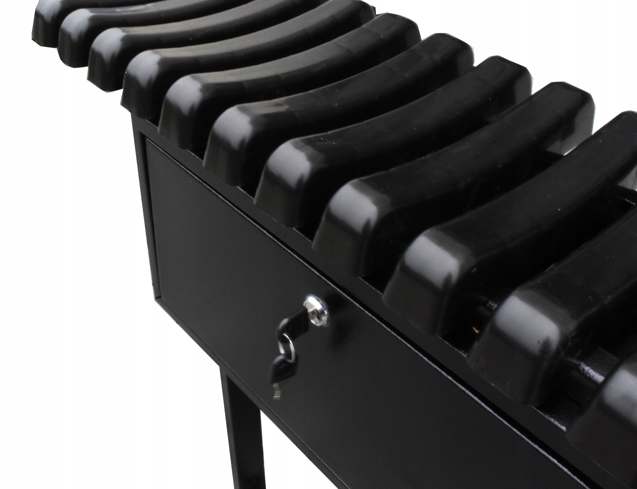 Металлический ящик под сиденьем также окрашен порошковой краской в черный цвет.