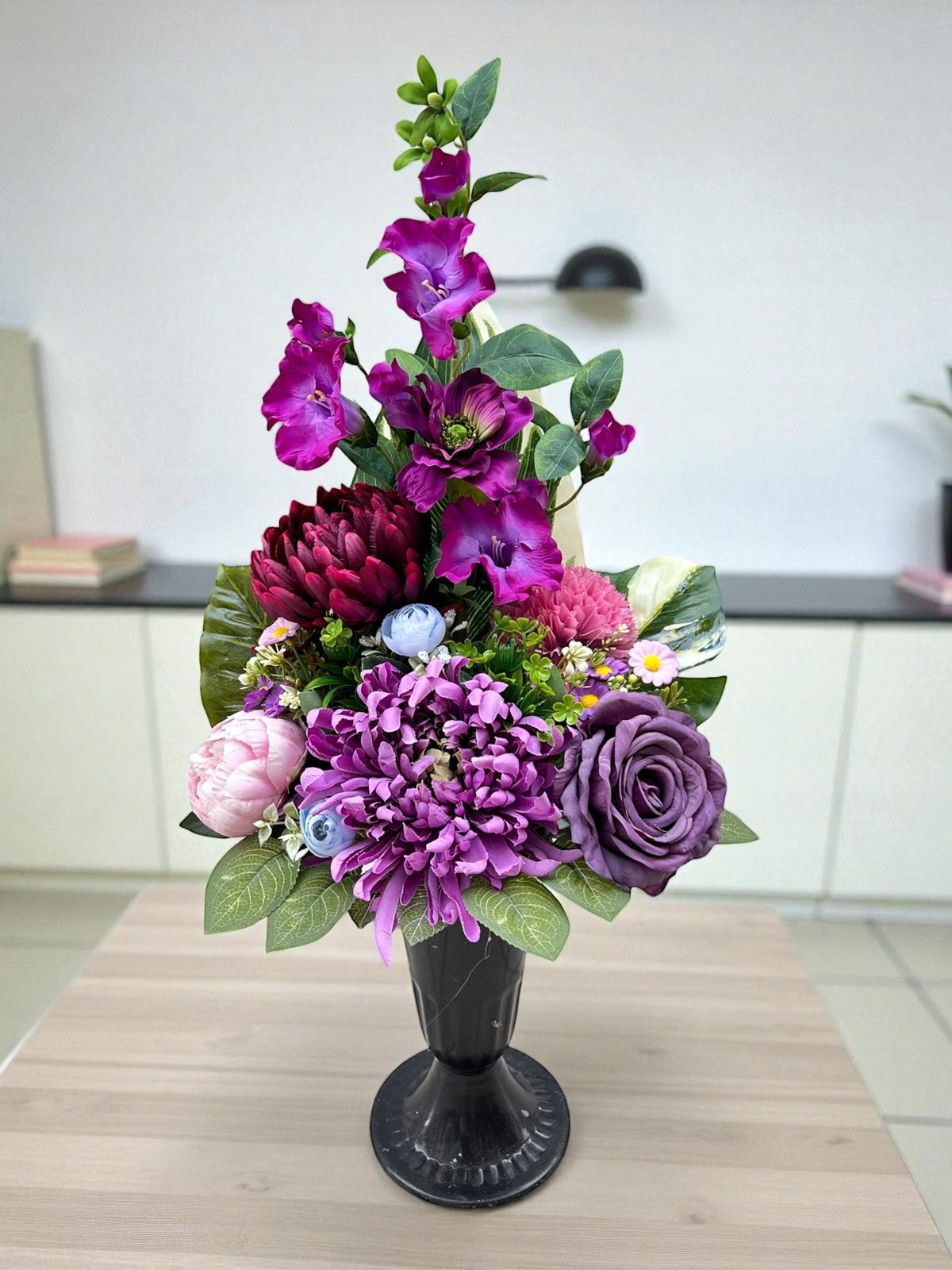 - Мы создали композицию, используя проверенные материалы и пластик высочайшего качества. Цветы выглядят как живые, что делает композицию восхитительной своей эстетикой.
