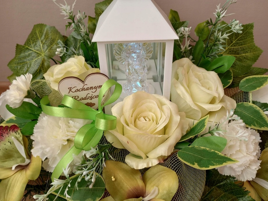 ИСКУССТВЕННАЯ КОМПОЗИЦИЯ С ФОНАРЕМ СО СВЕТЯЩИМСЯ АНГЕЛОМ+ БУКЕТ ДЛЯ ВАЗЫ >/p >