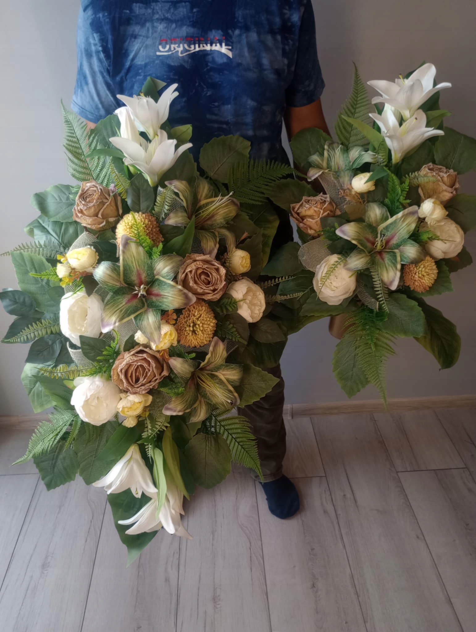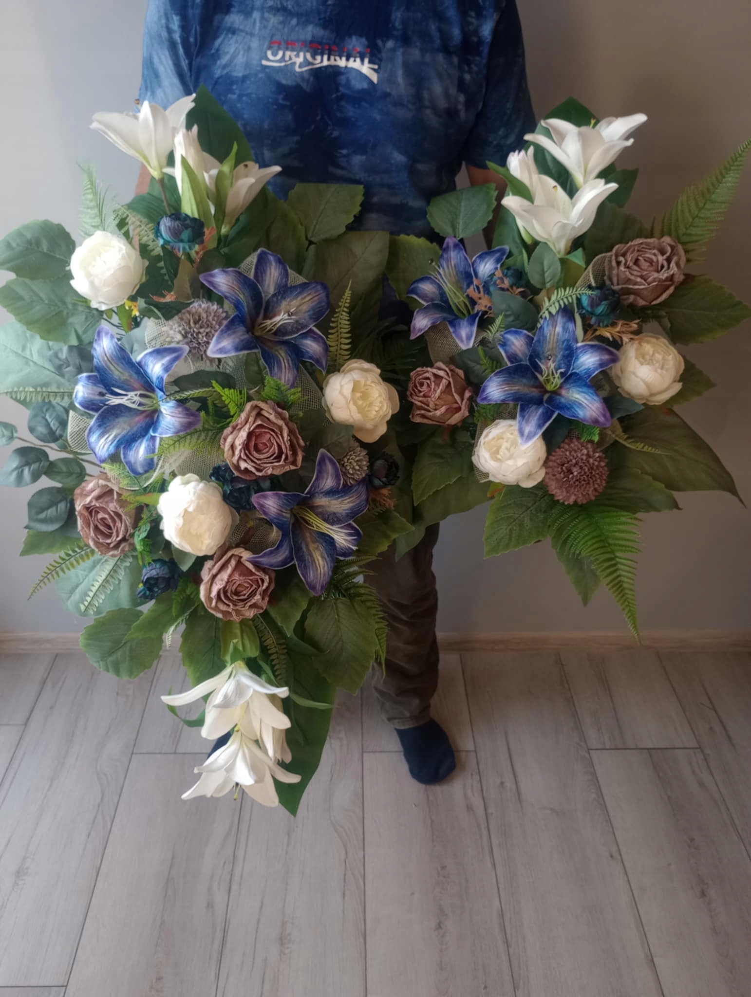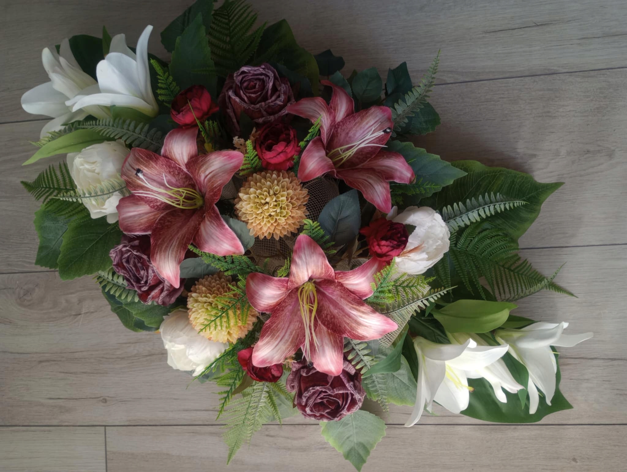 Украшение кладбища искусственные цветы на могилу, цветочная композиция PREMIU LILIA
