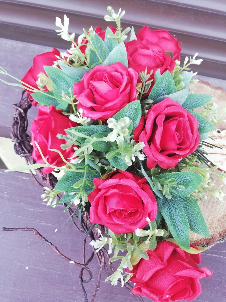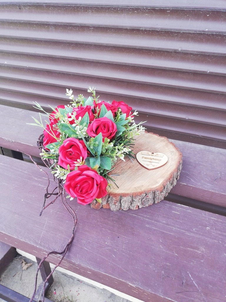 Модная композиция с использованием деревянных украшений и качественных цветов и аксессуаров