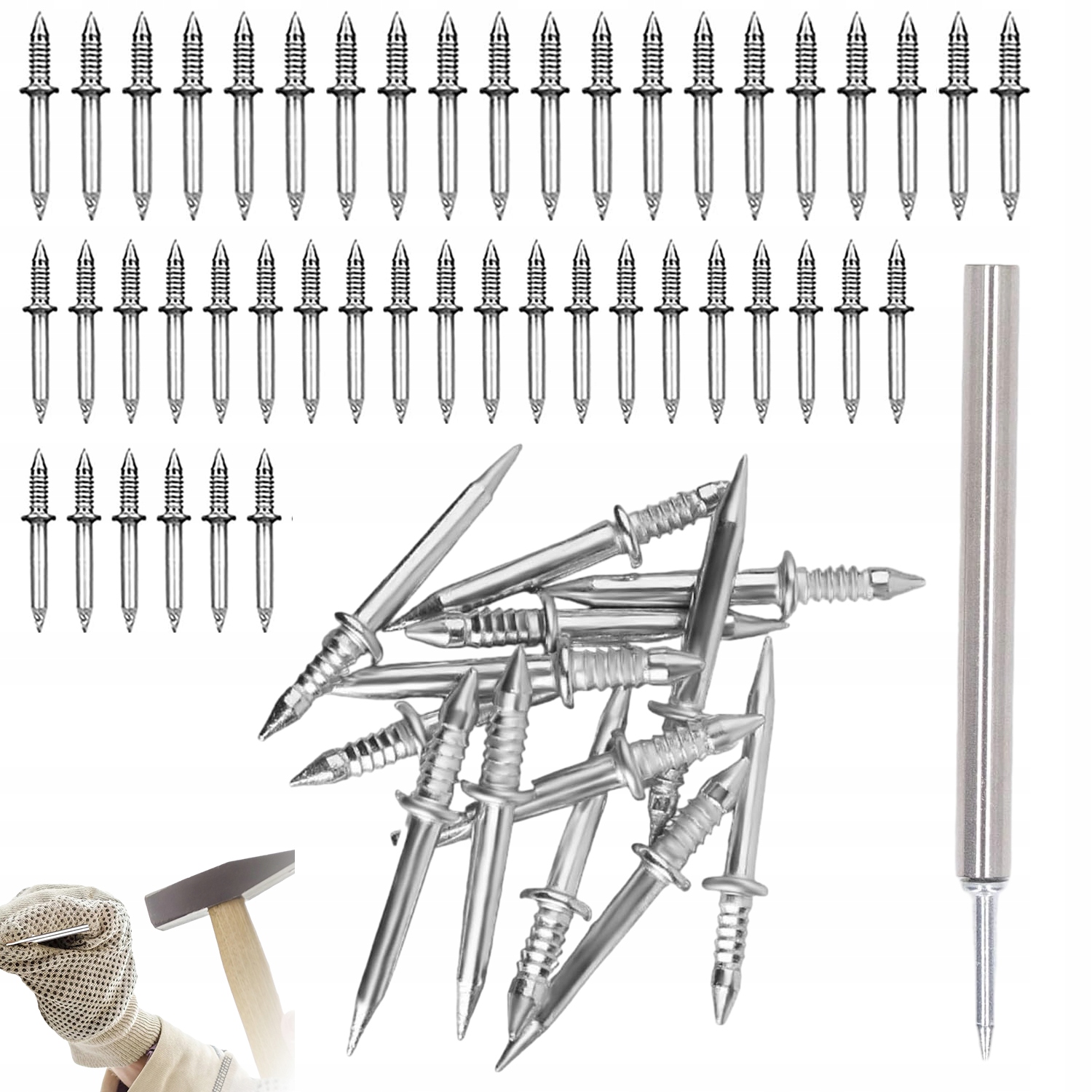🔨 Список пакетов: вы получите 100 бесшовных гвоздей с двумя головными базовыми нитью и 1 инструментами в рукаве, адаптированных к гвоздям. Количество достаточно, чтобы удовлетворить ваши потребности, связанные с DIY и ремеслом. Предложите фотографии и т. Д. Широкий спектр приложений и сделайте их доступными для нуждающихся.
