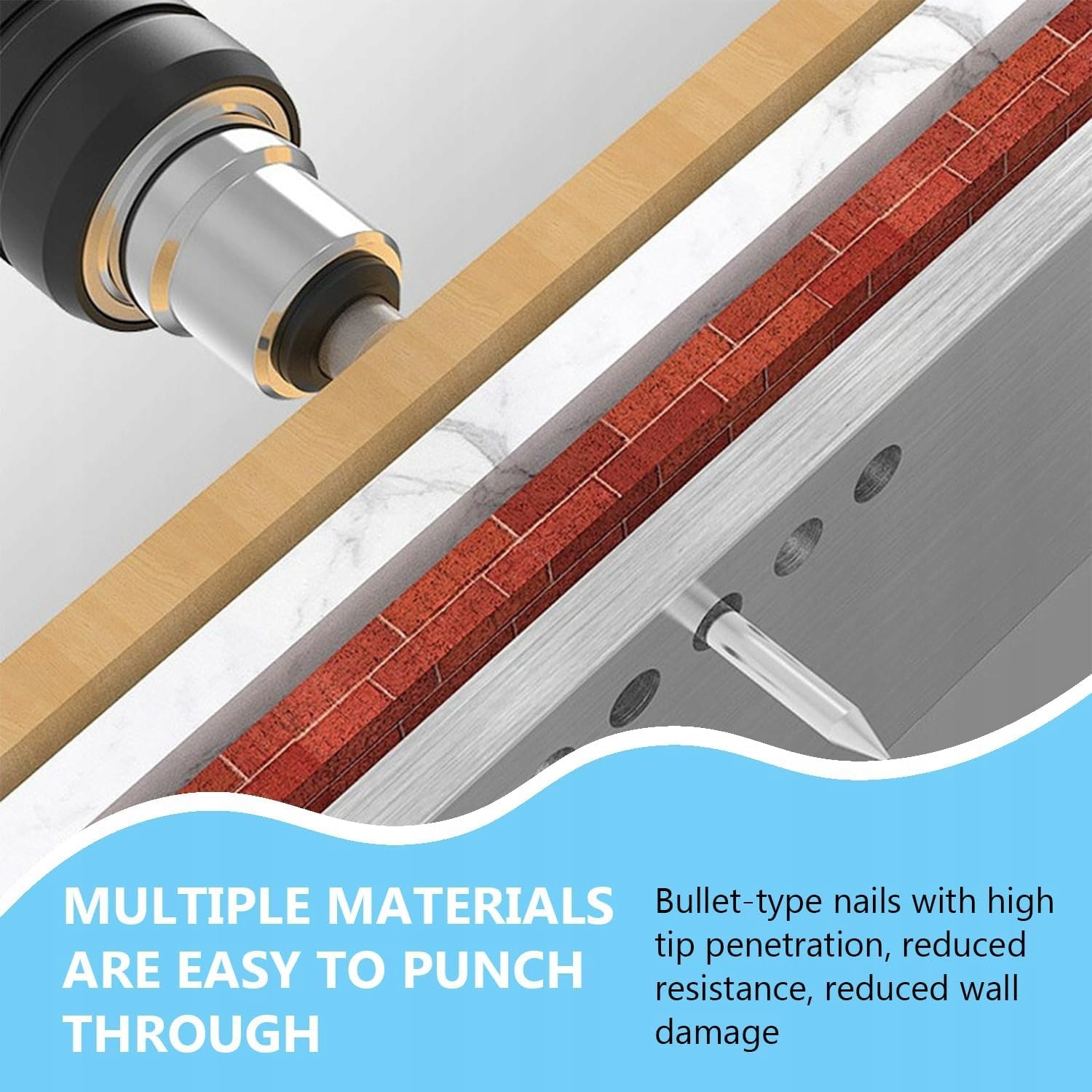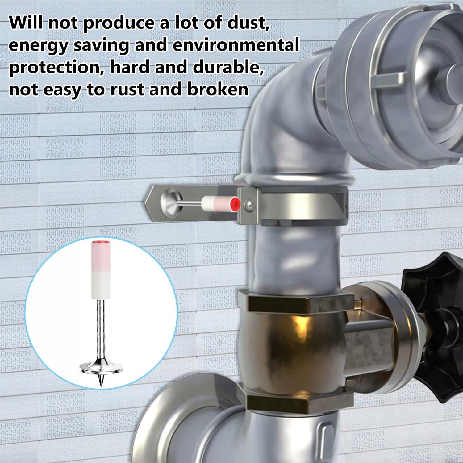 Каждый гвоздь изготовлен из прочной стали, устойчивой к растрескиванию, деформации и коррозии. Диаметр 7,3 мм и конструкция с пластиной обеспечивают хорошее проникновение материала и стабильность крепления даже при интенсивном использовании.