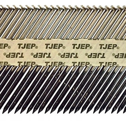 Разновидность гвоздей, созданная специально для деревянного строительства. Оптимальный угол 34° обеспечивает лучшую эргономику и доступ к труднодоступным местам. Использование специальной бумаги позволило исключить осыпание соединительного материала и осколки при забивании молотком, а также обеспечило защиту прибиваемых элементов.