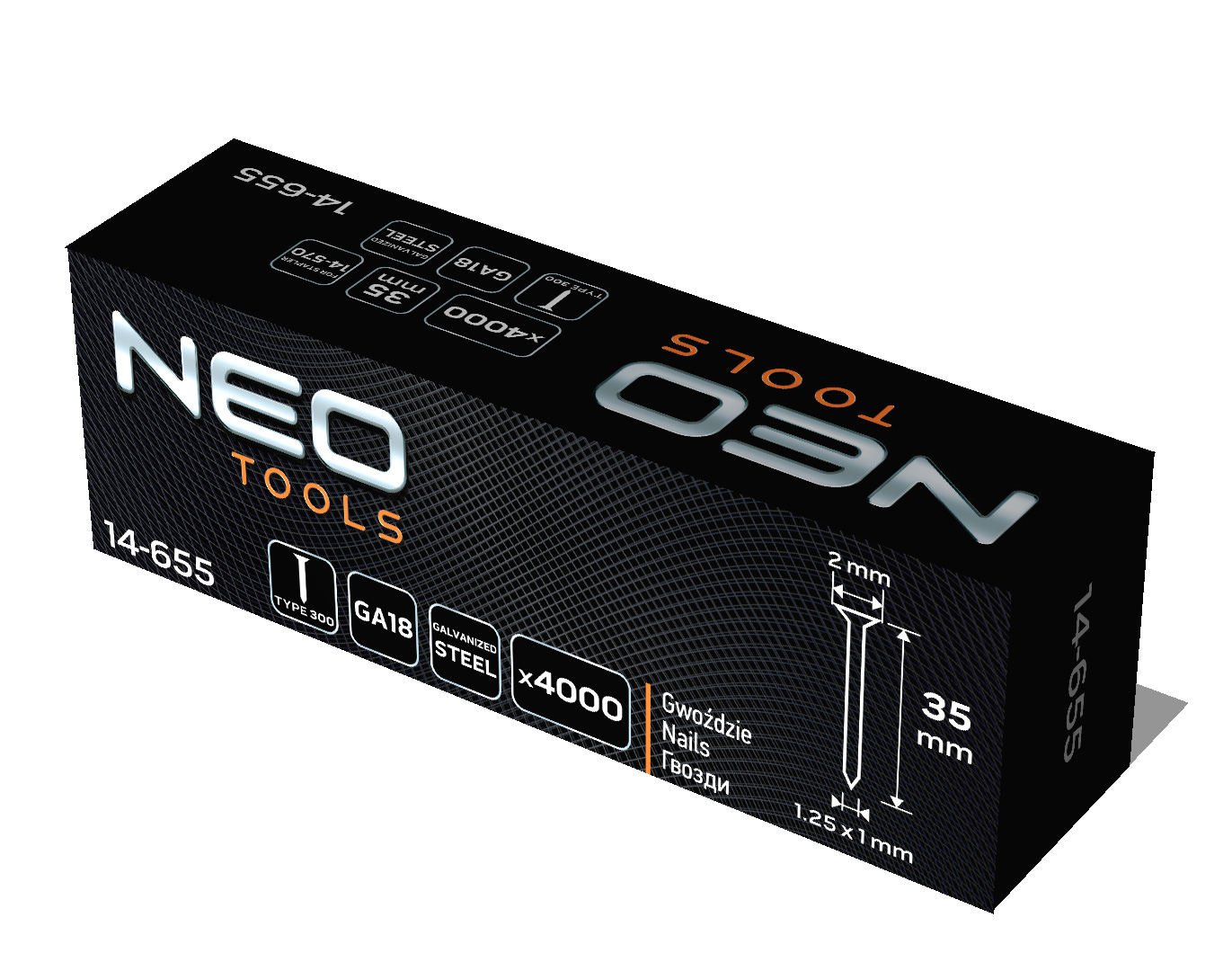 Гвозди оцинкованные для пневматического степлера (14-570), GA18, Тип 300 (F), длина 35 мм, 4000, NEO 14-655
