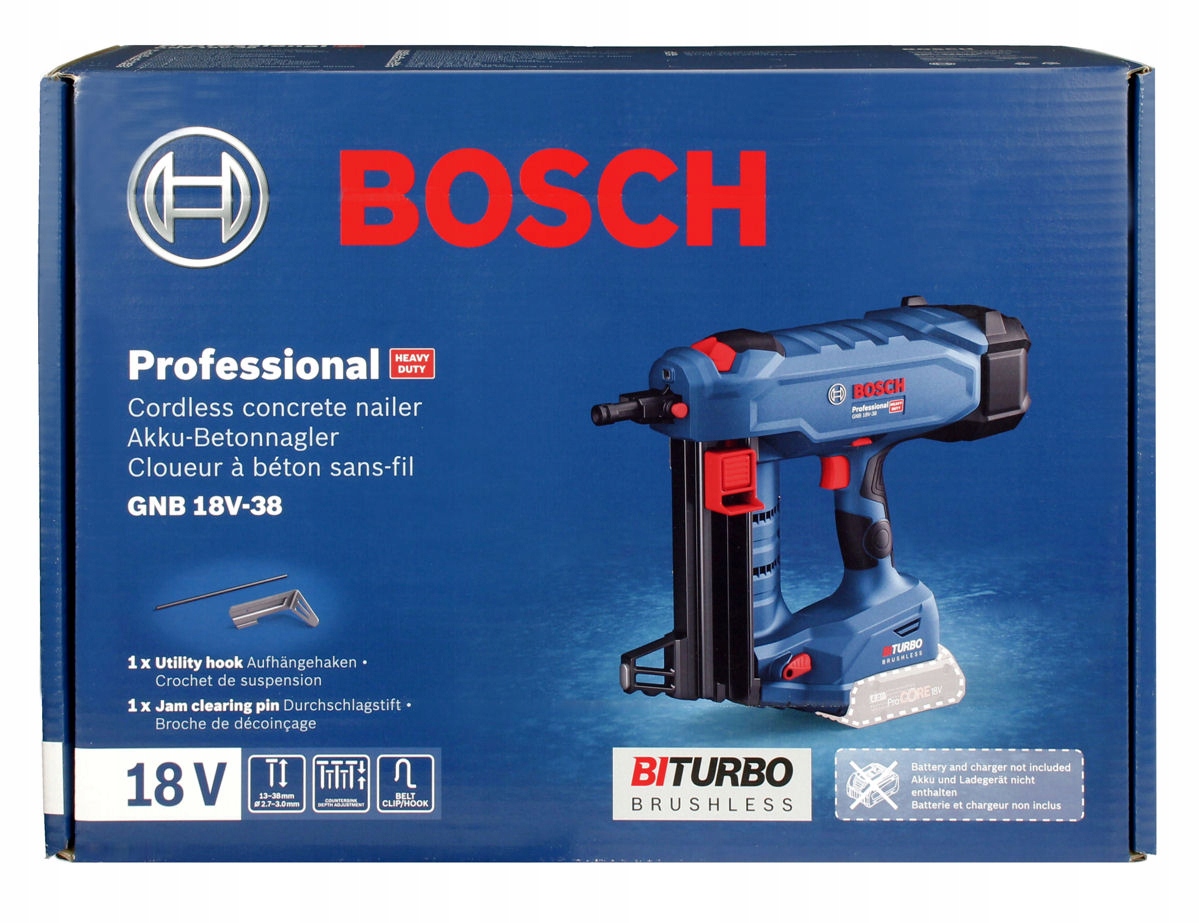 Профессиональный нейлер GNB 18V-38 от BOSCH — специализированное устройство, предназначенное для забивания гвоздей максимальной длиной 38 мм и диаметром 3,0 мм.