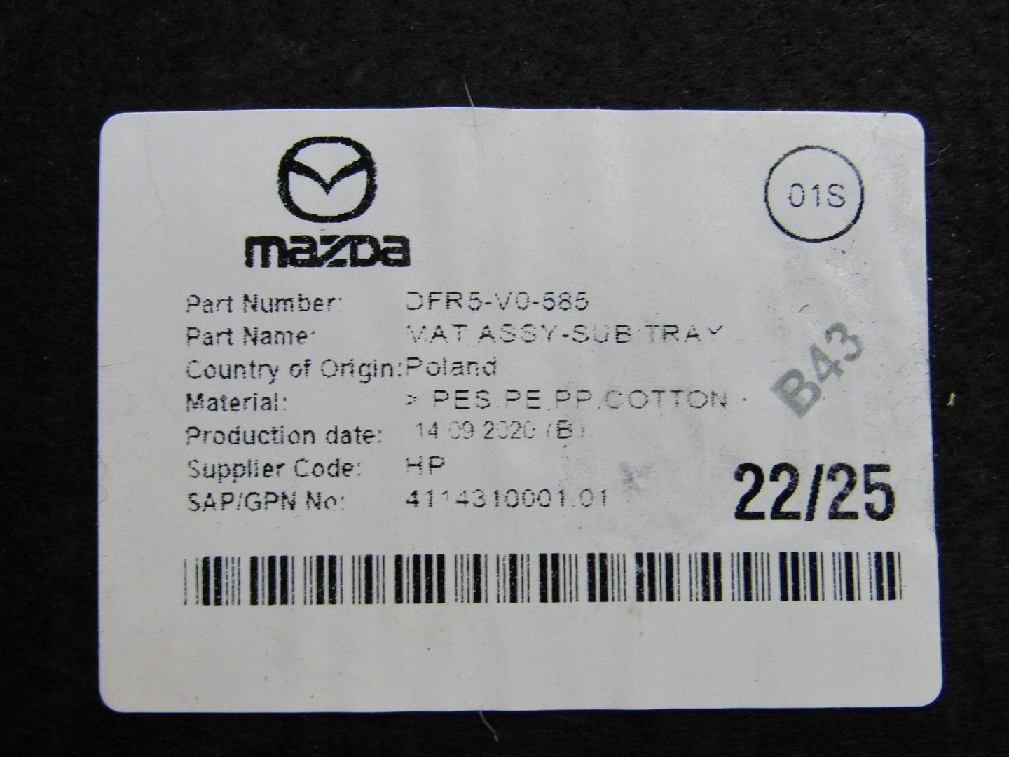 CX-30 20R Carpet INSERT LUGE LUGE LINER SOUPARTING DFR5-V0-585