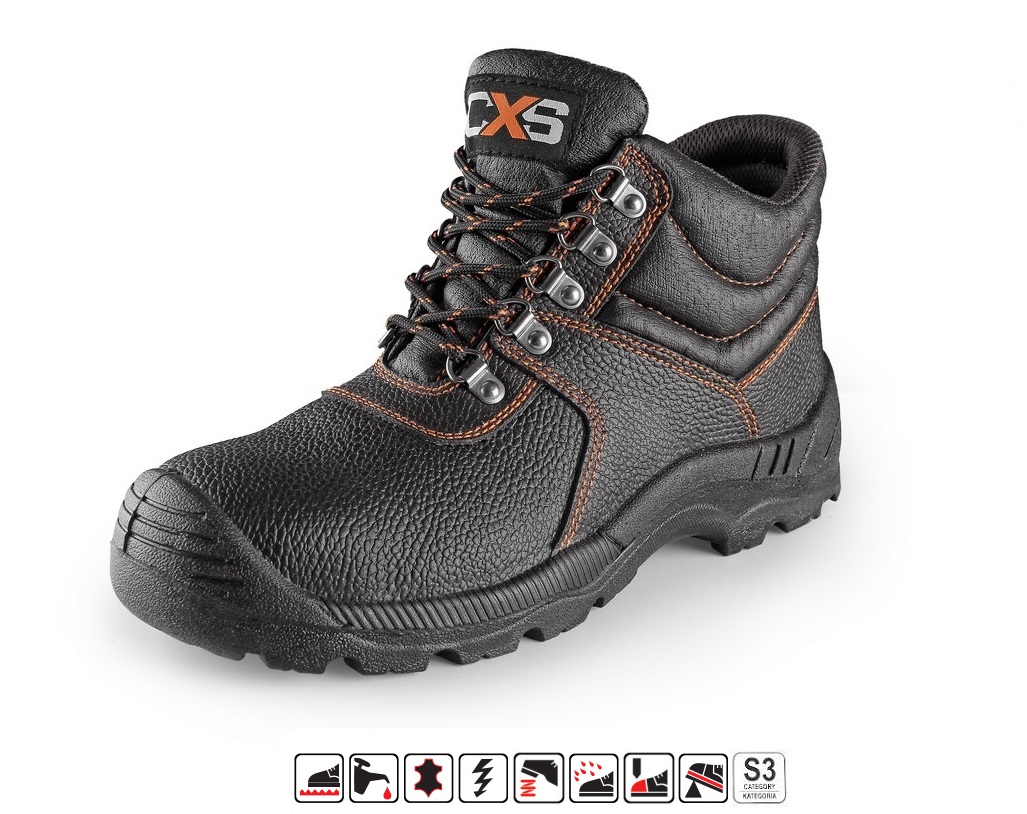 Защитные рабочие ботинки CXS® MARBLE S3 со стальным носком и стальной антиперфорационной вставкой в подошве, защищающей ногу от проколов (например, после наступления на гвоздь).