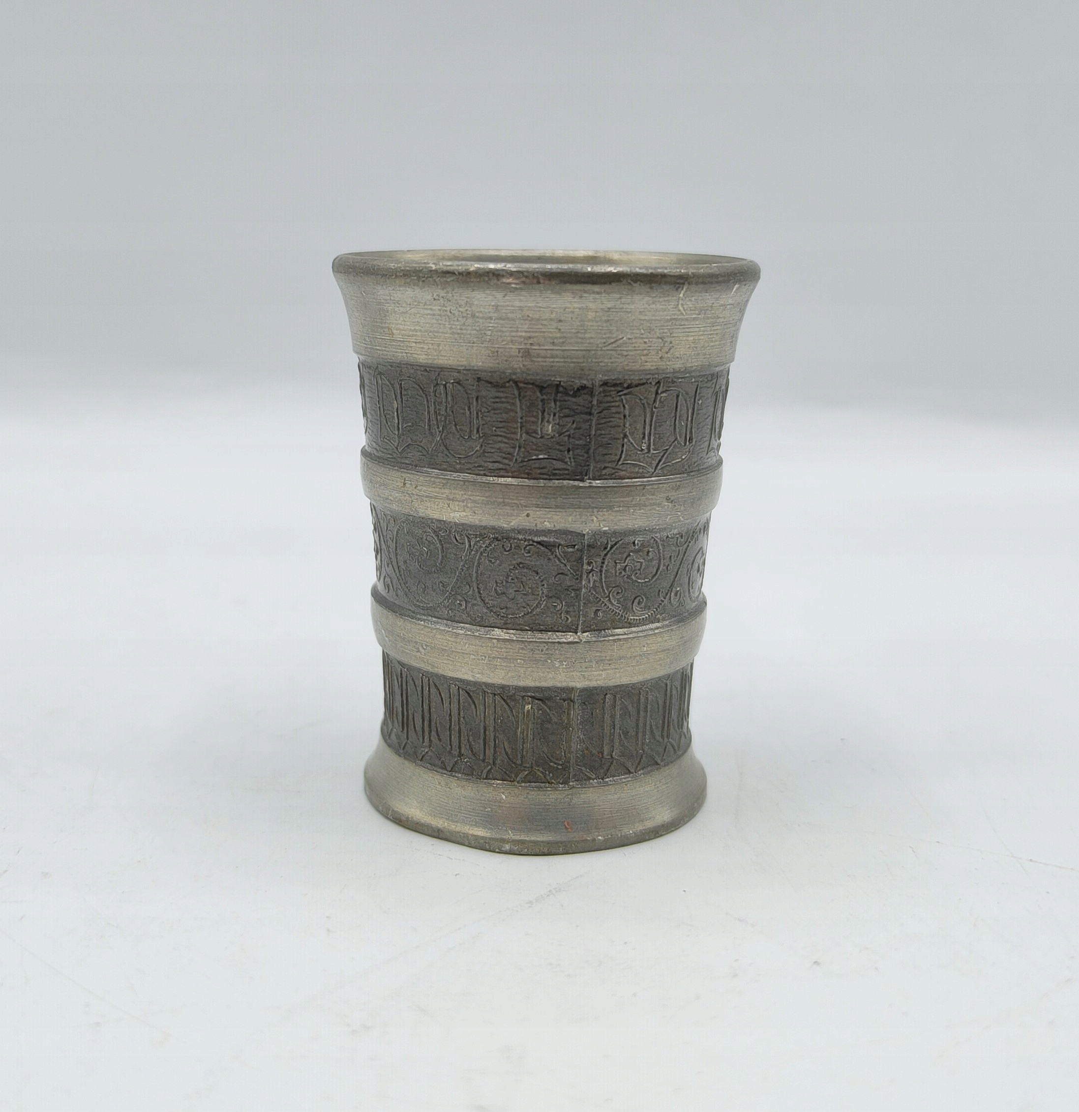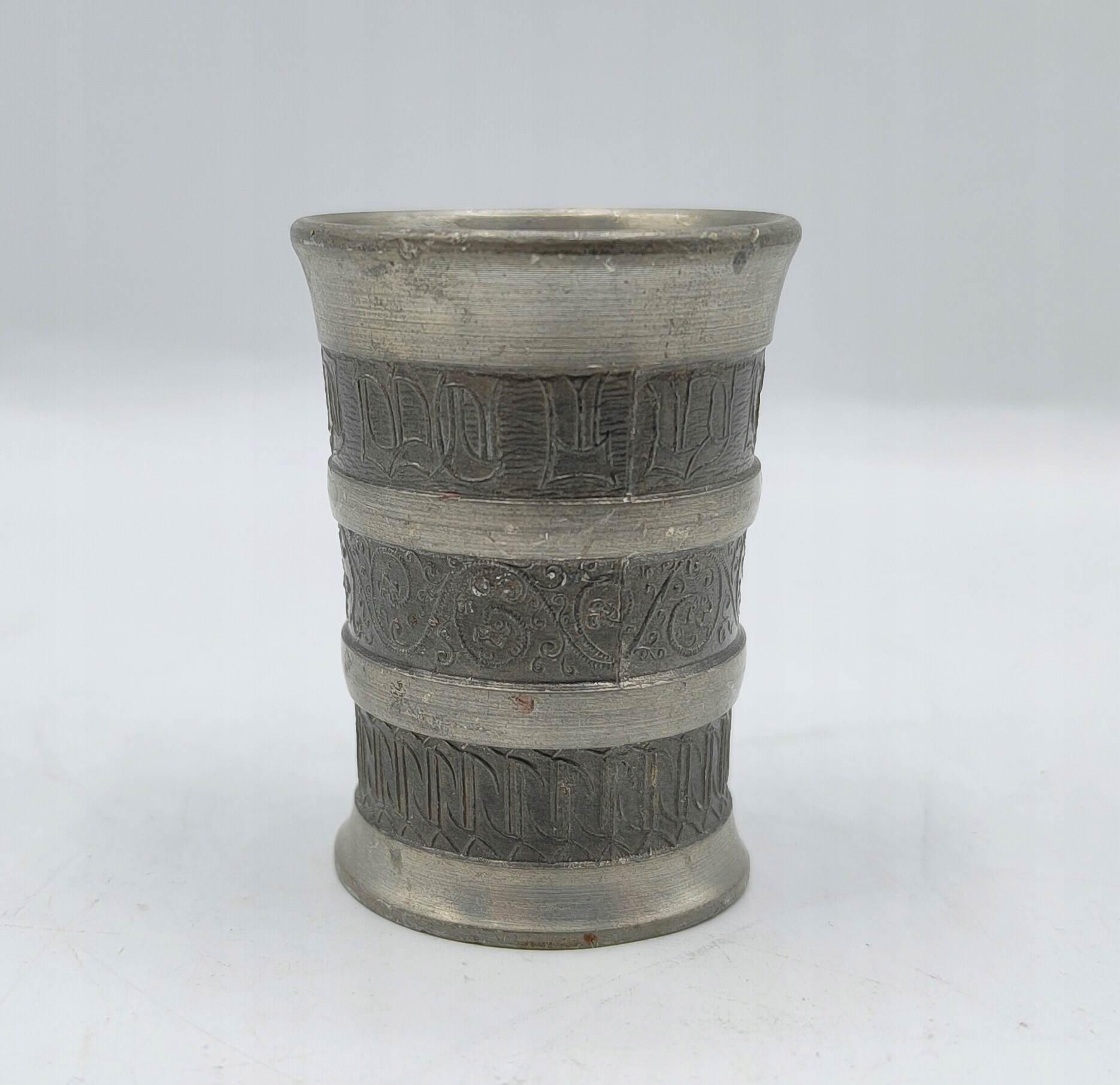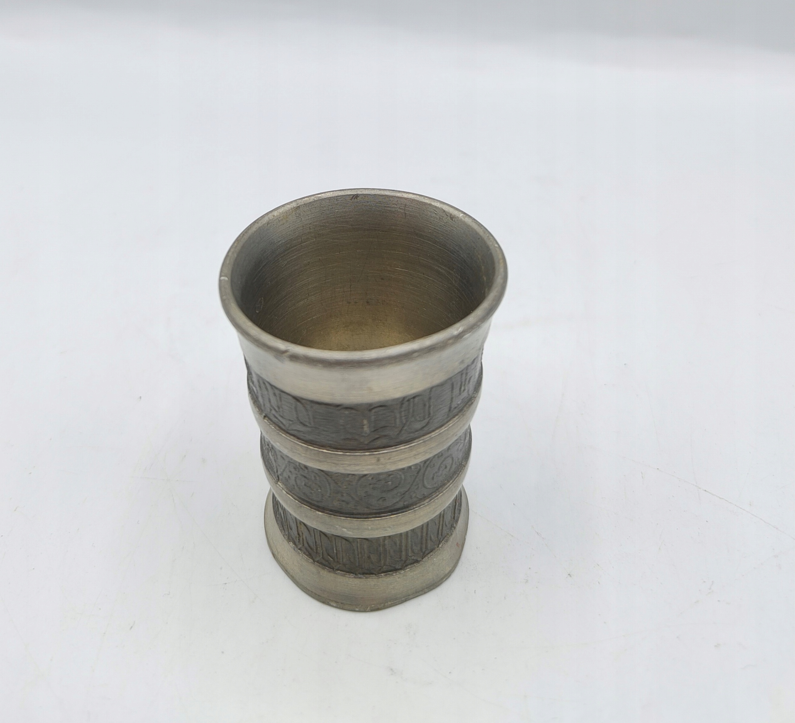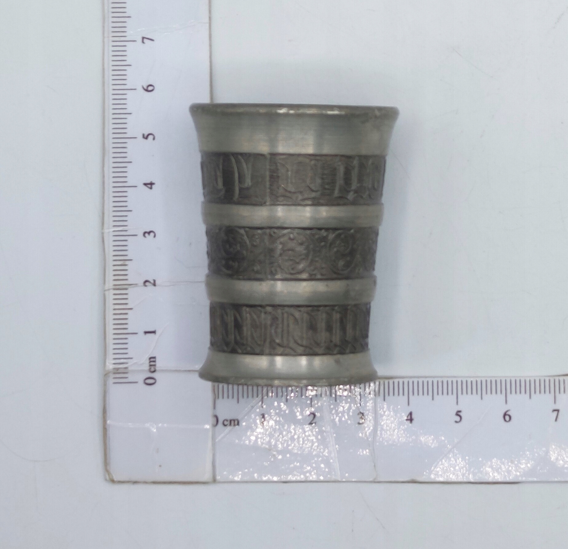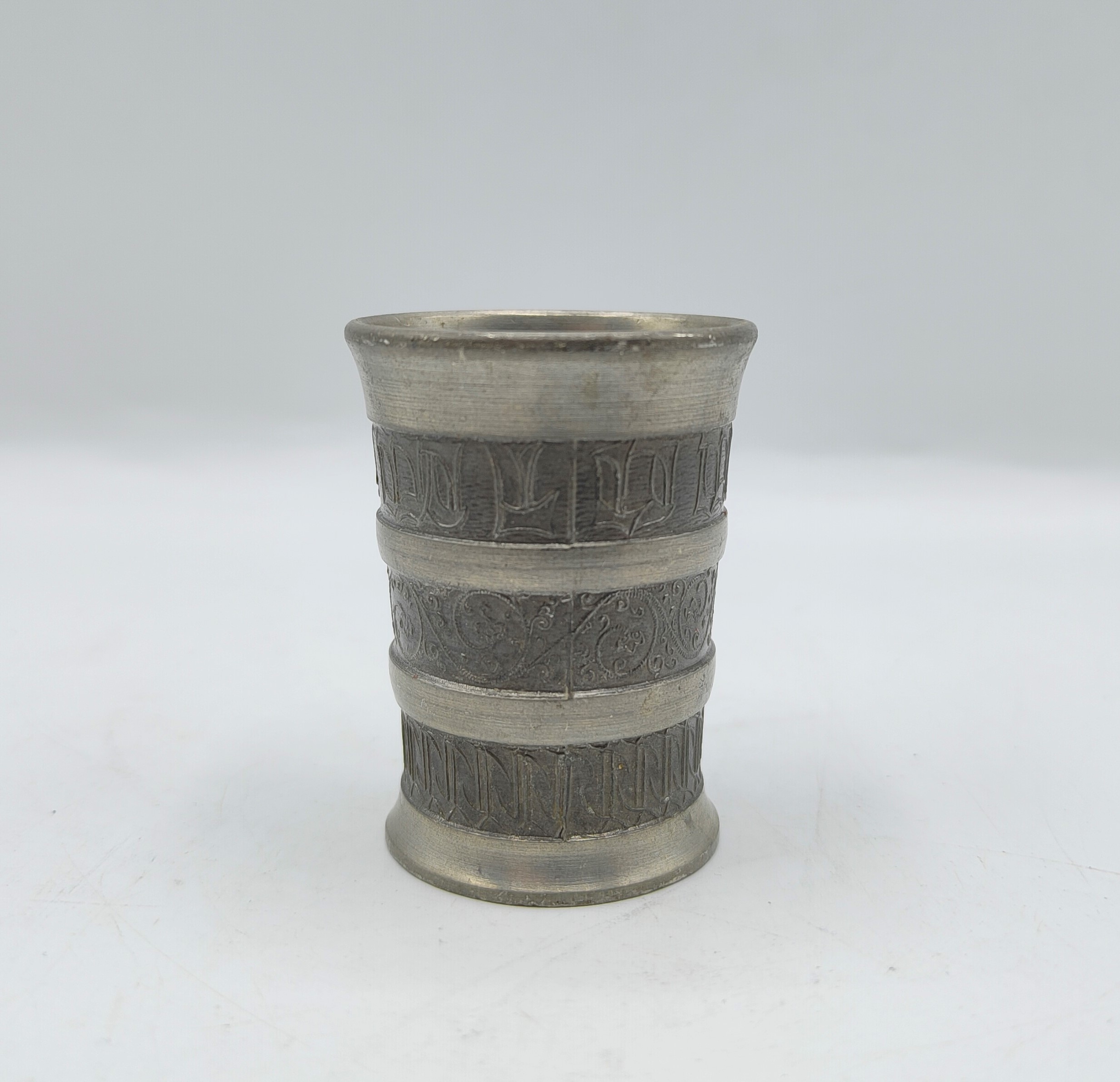 ЖЕСТЯНАЯ интересная СТАРЫЙ ПОДПИСНЫЙ стакан 25 мл