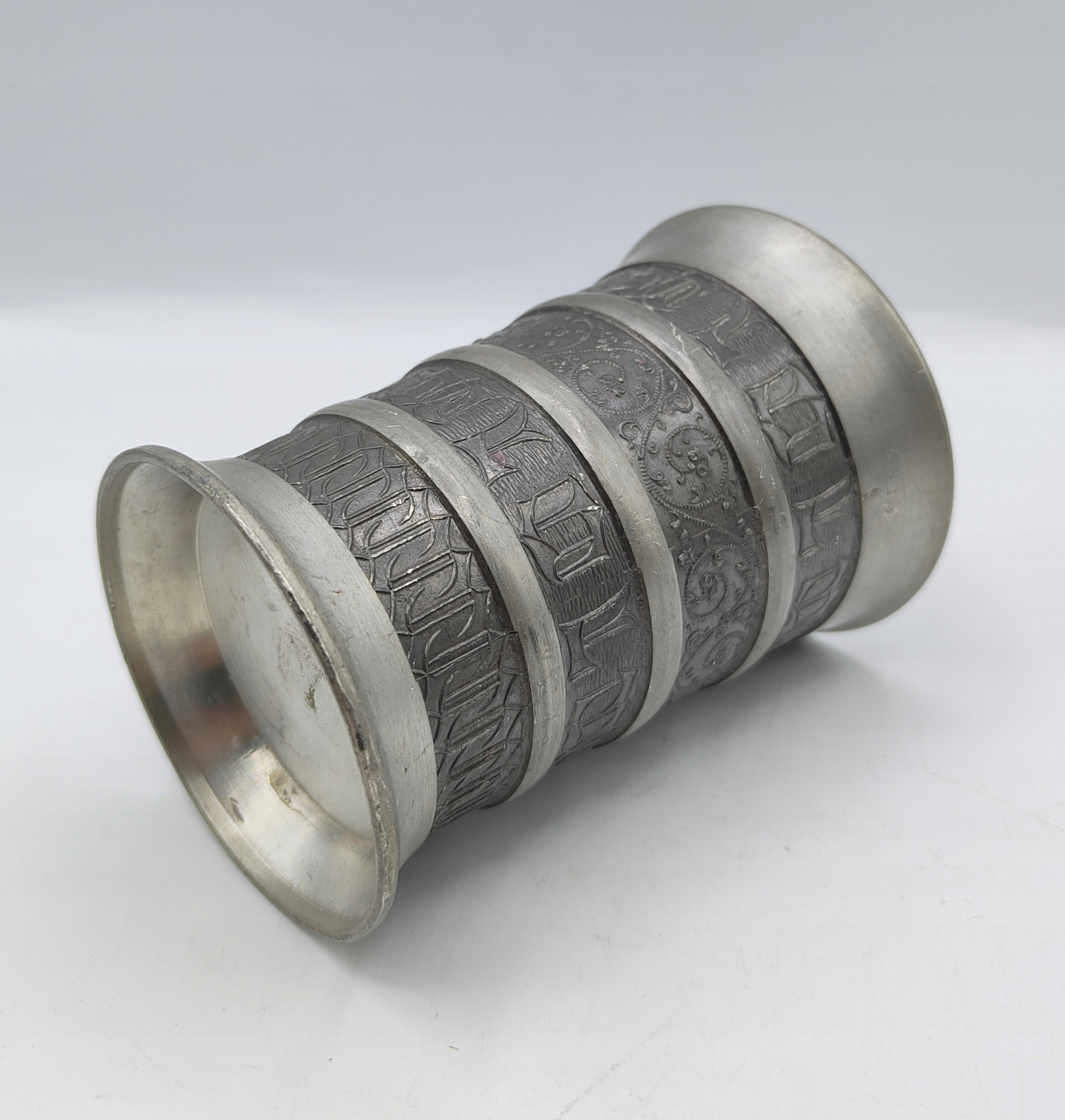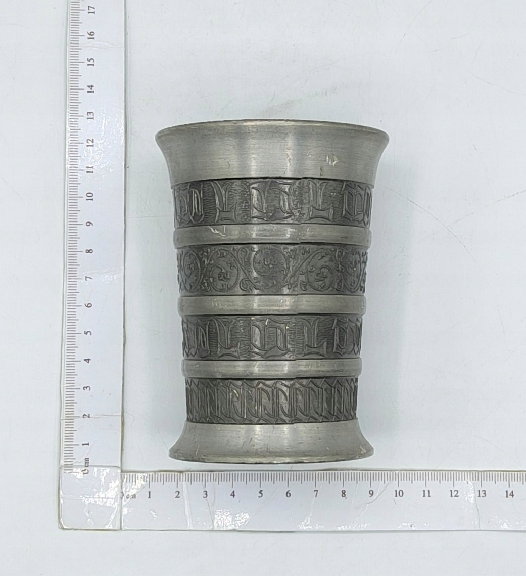 ЖЕСТЯНАЯ интересная СТАРАЯ кружка 11 см С ПОДПИСЬЮ 300мл