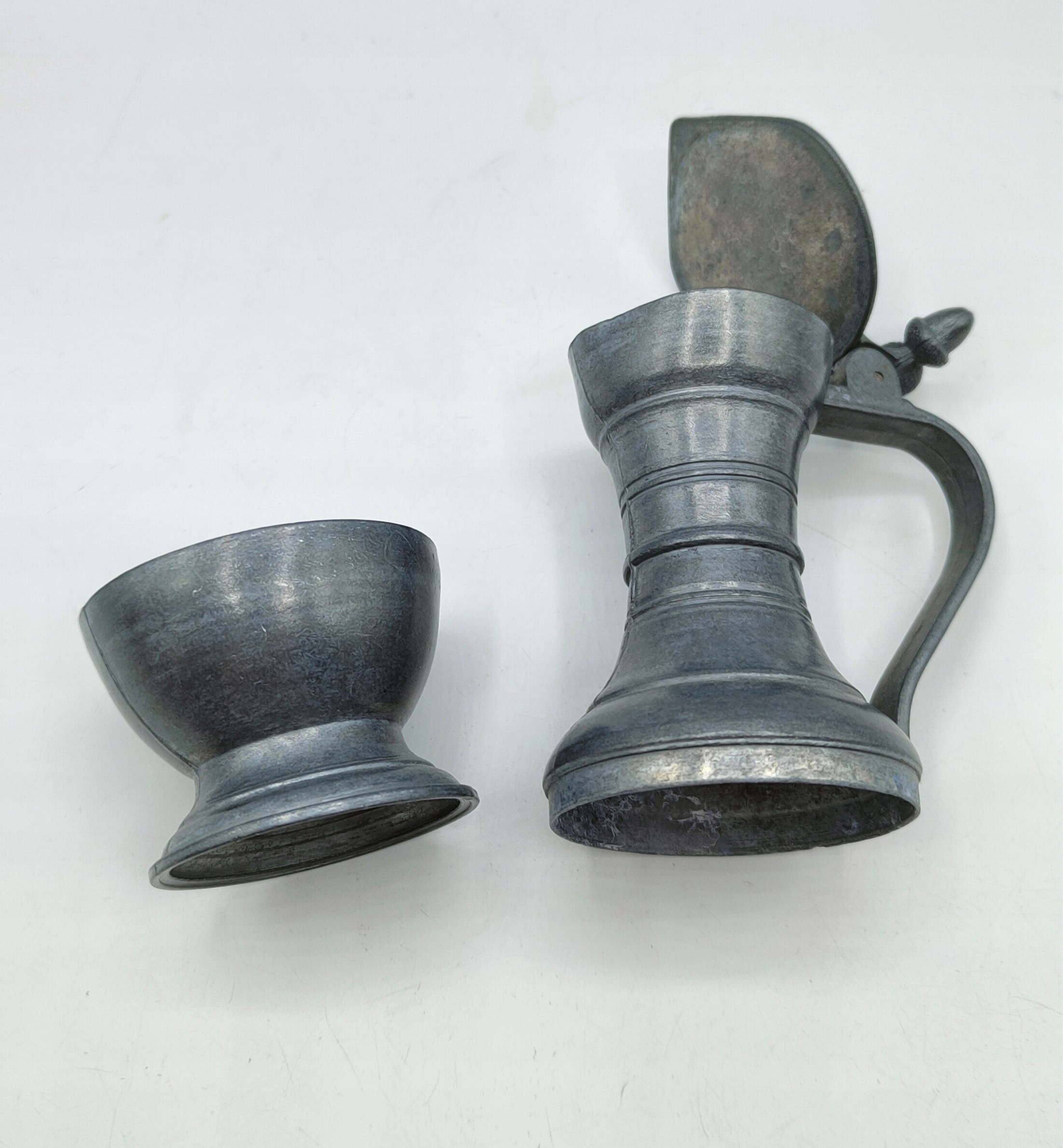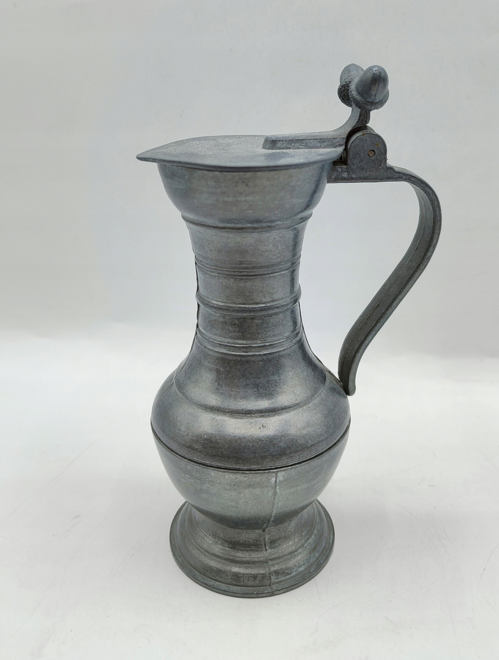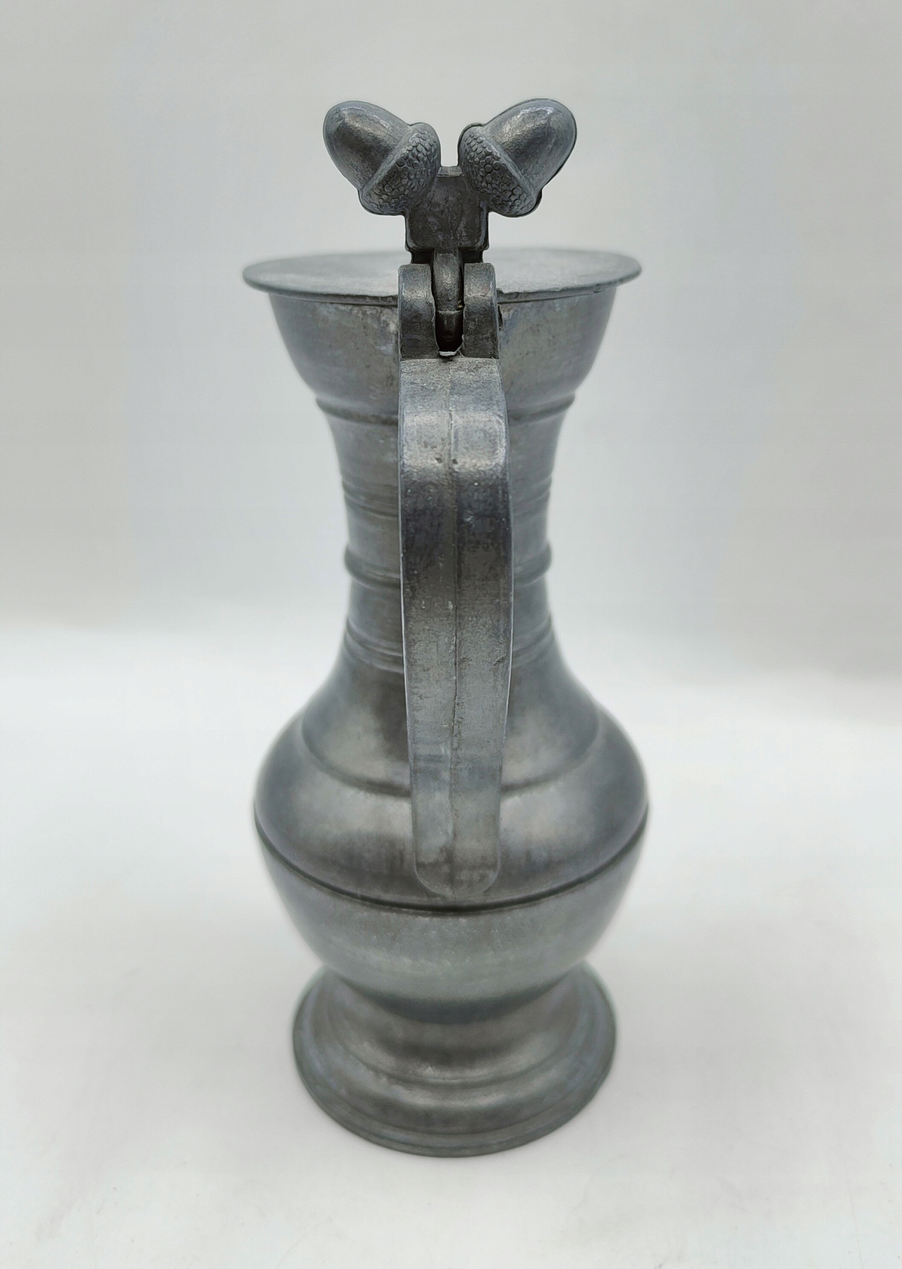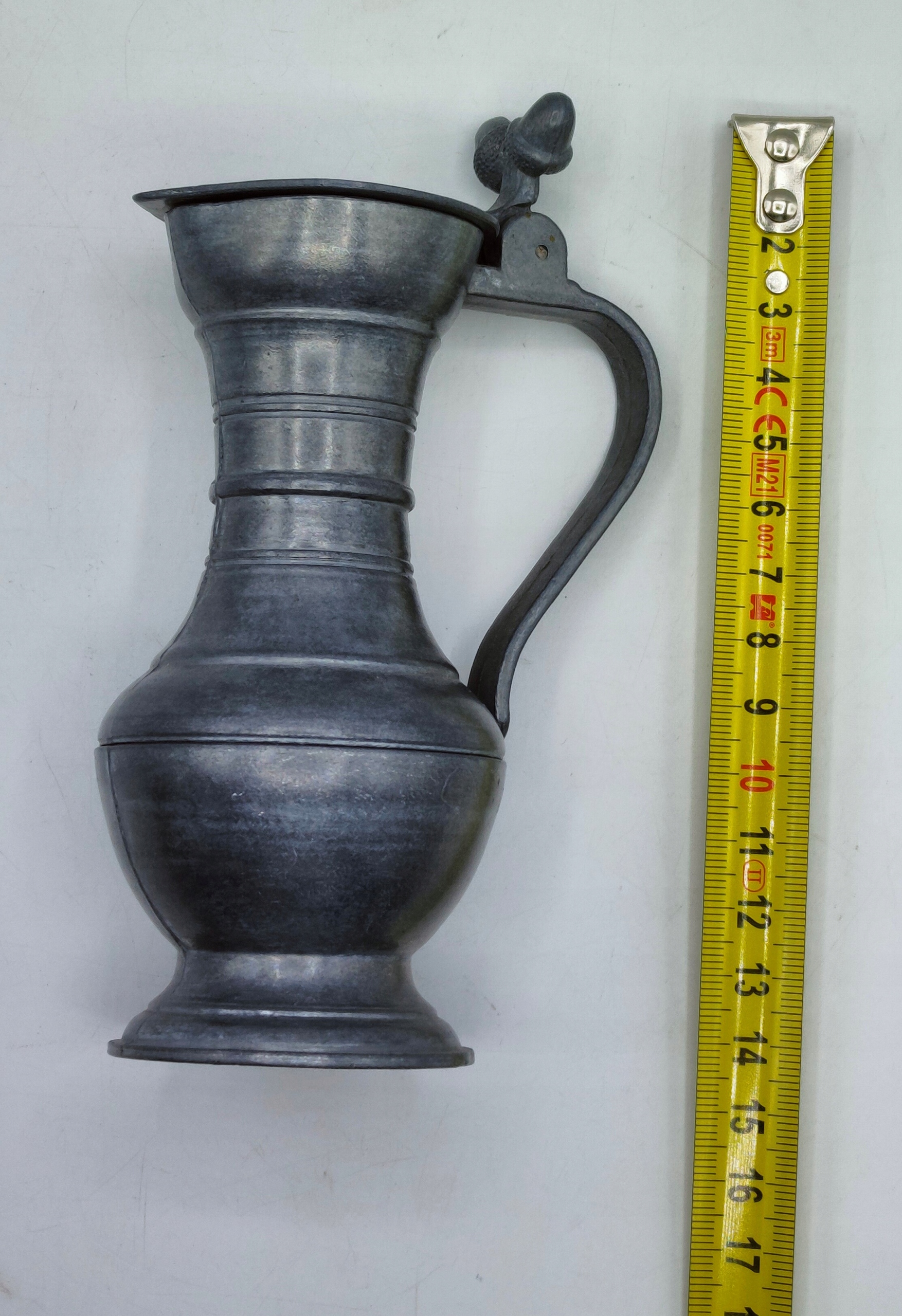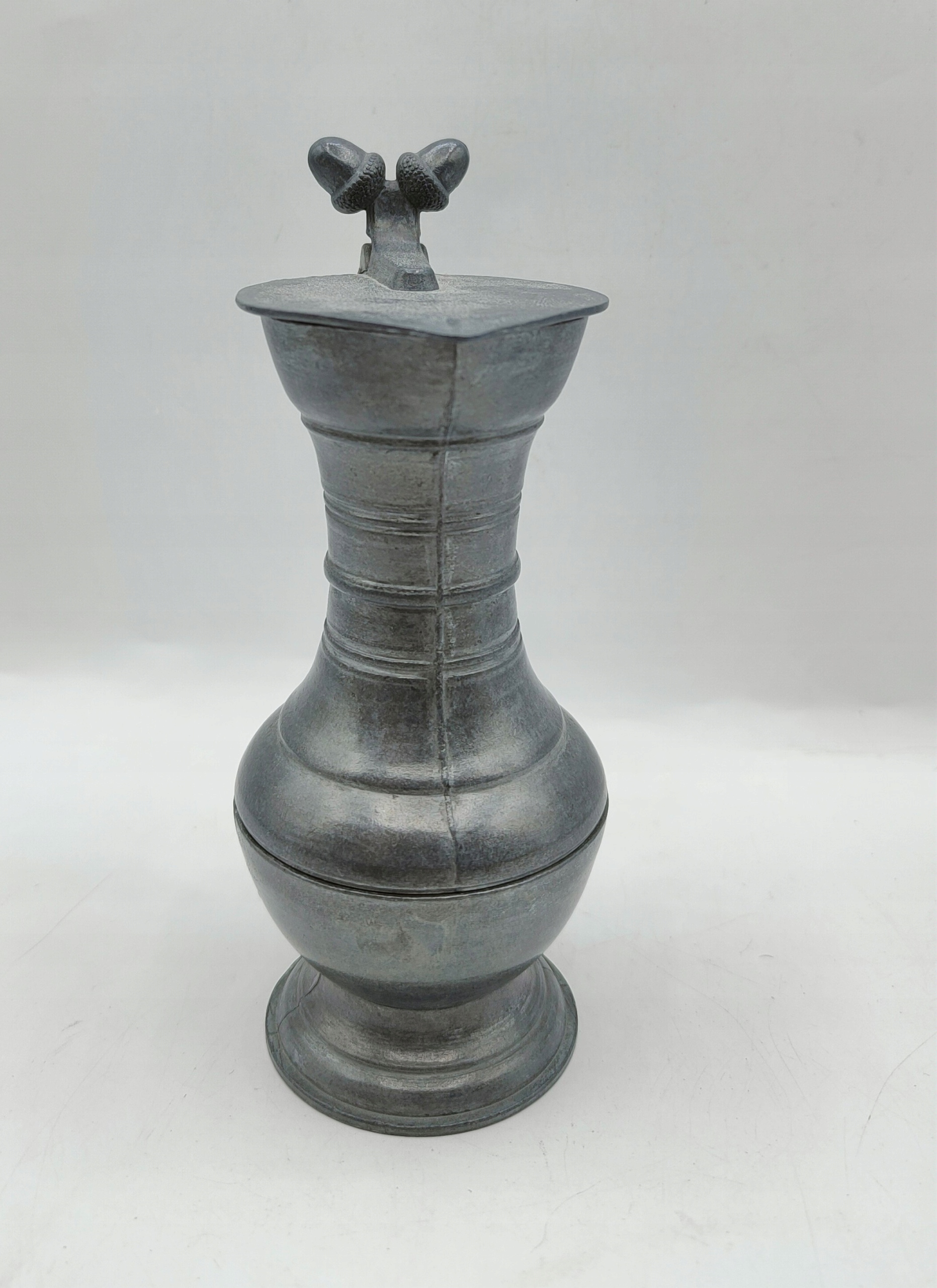 CYNA sygnowany STARY dzbanek dzban ozdobny z żołędziami CYNY 14cm