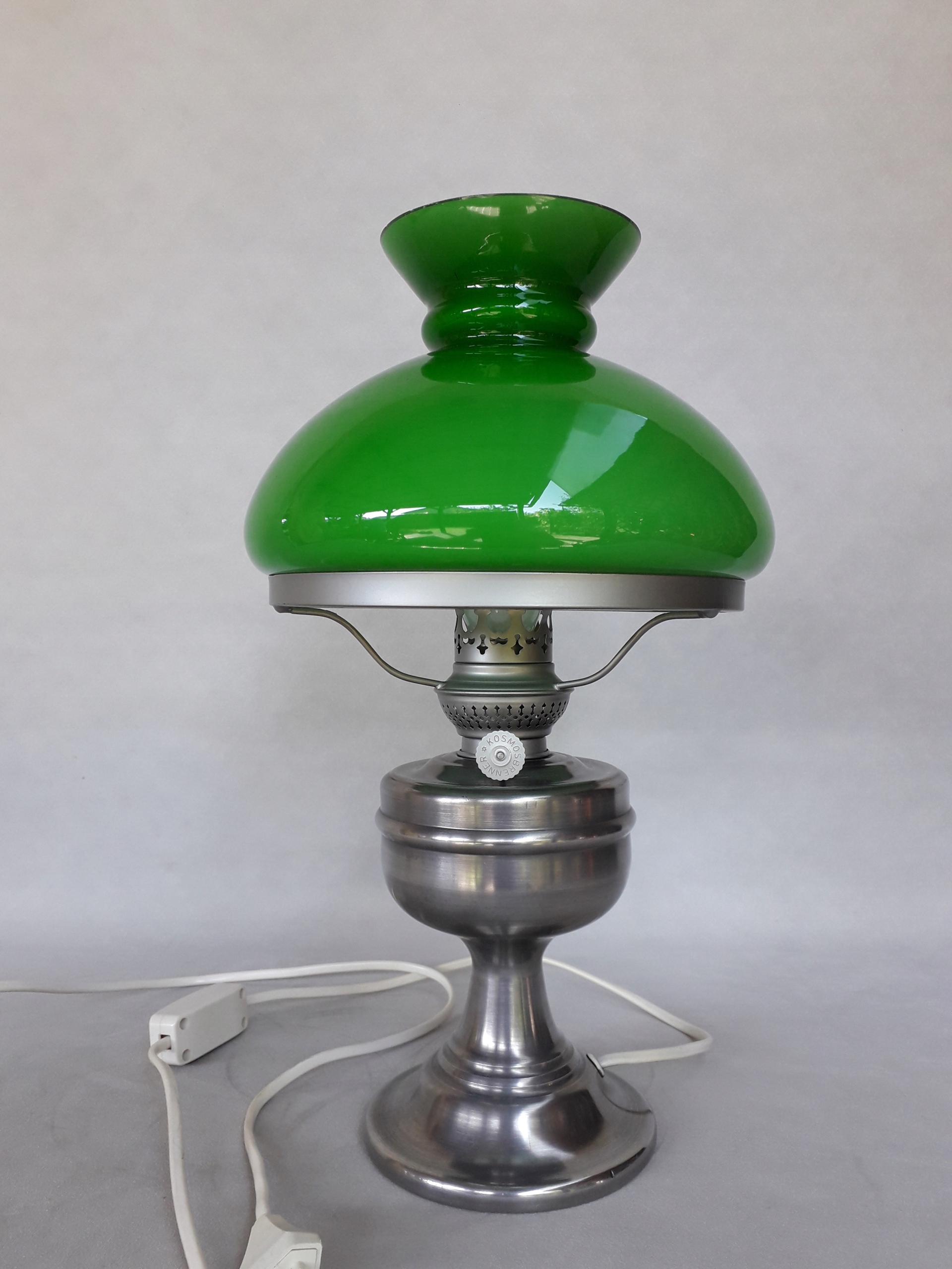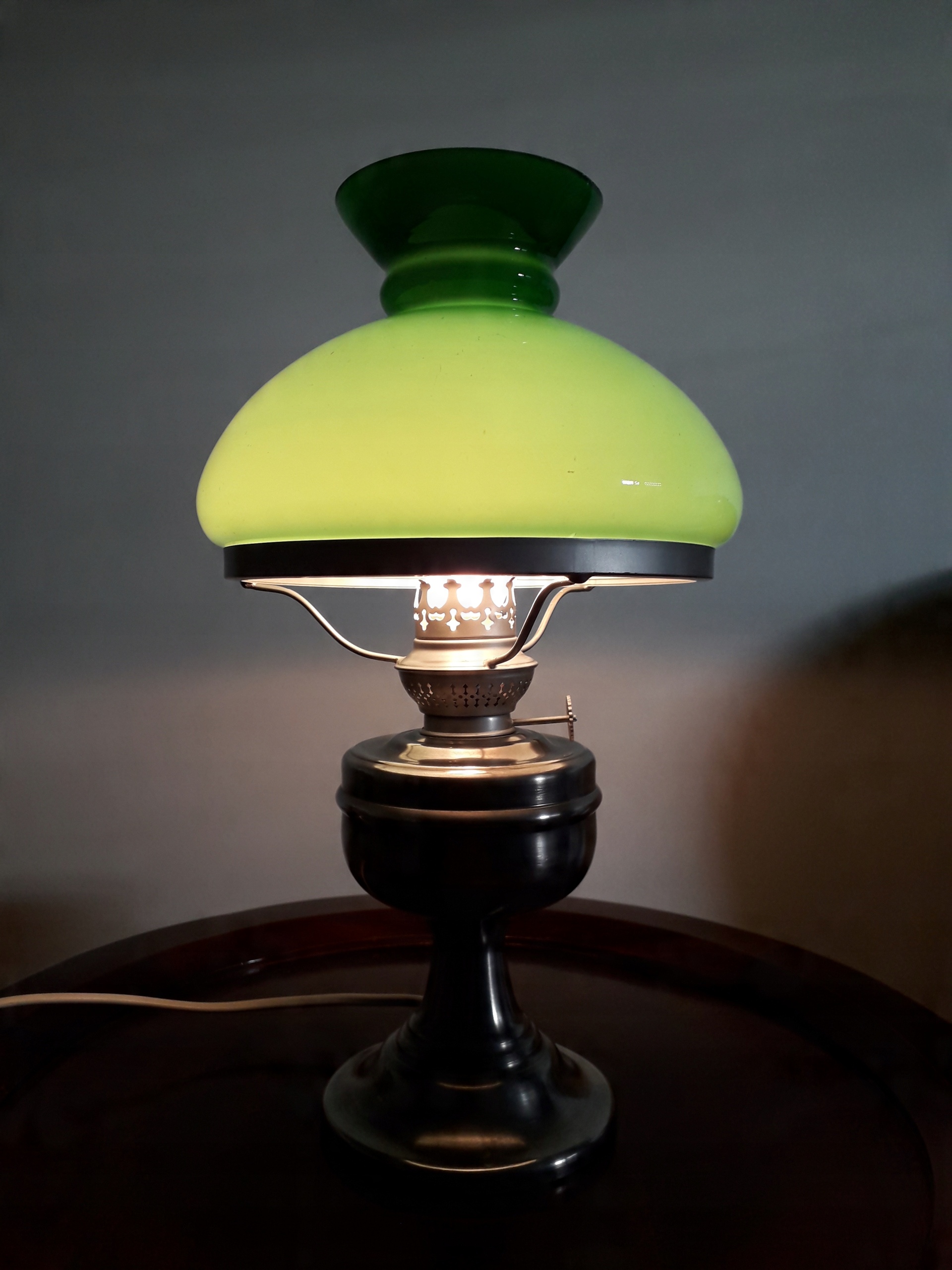 Изготовление - колонка, цоколь лампы из жести. Верхняя часть декорирована стеклянным абажуром.