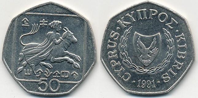 Cypr 50 Cents - 1991r ... Monety