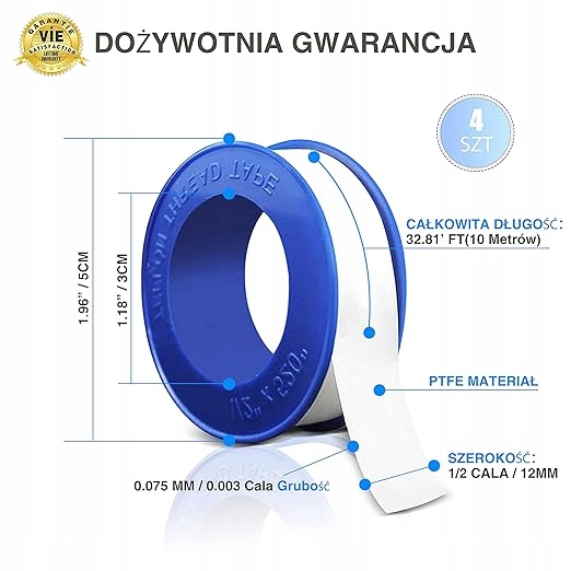 CZ Store Teflonowa Taśma Uszczelniająca 4 Rolki, 12 m Długości