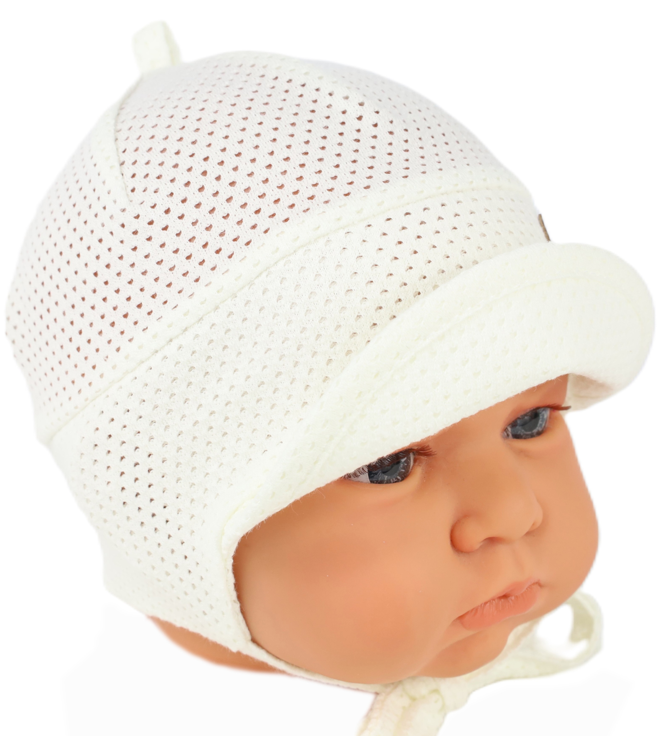 CZAPKA AŻUROWA Z DASZKIEM PRZEWIEWNA LATO 38-40 IVORY