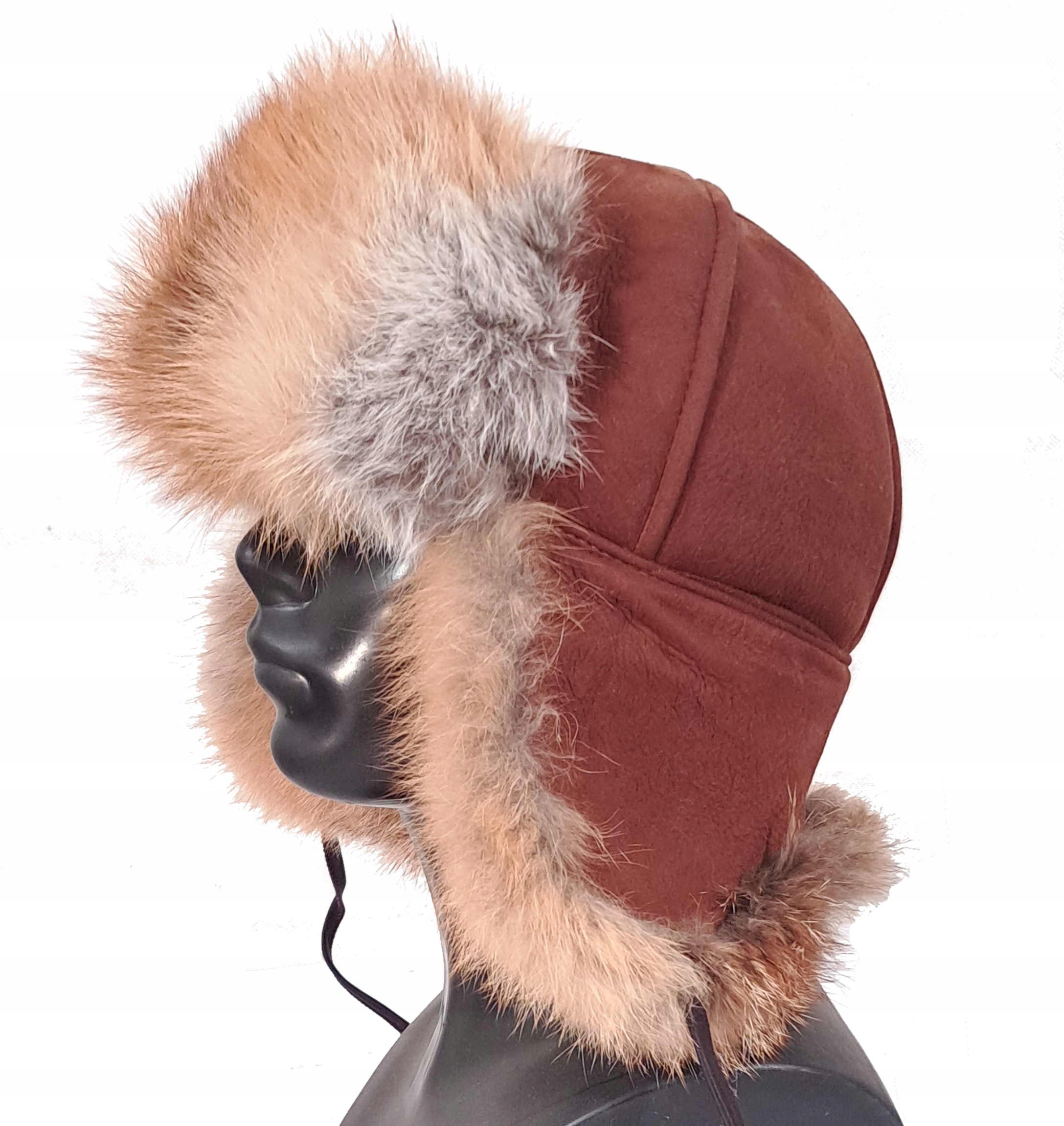 CZAPKA DAMSKA ZIMOWA PILOTKA LIS RUDY Naturalny 57