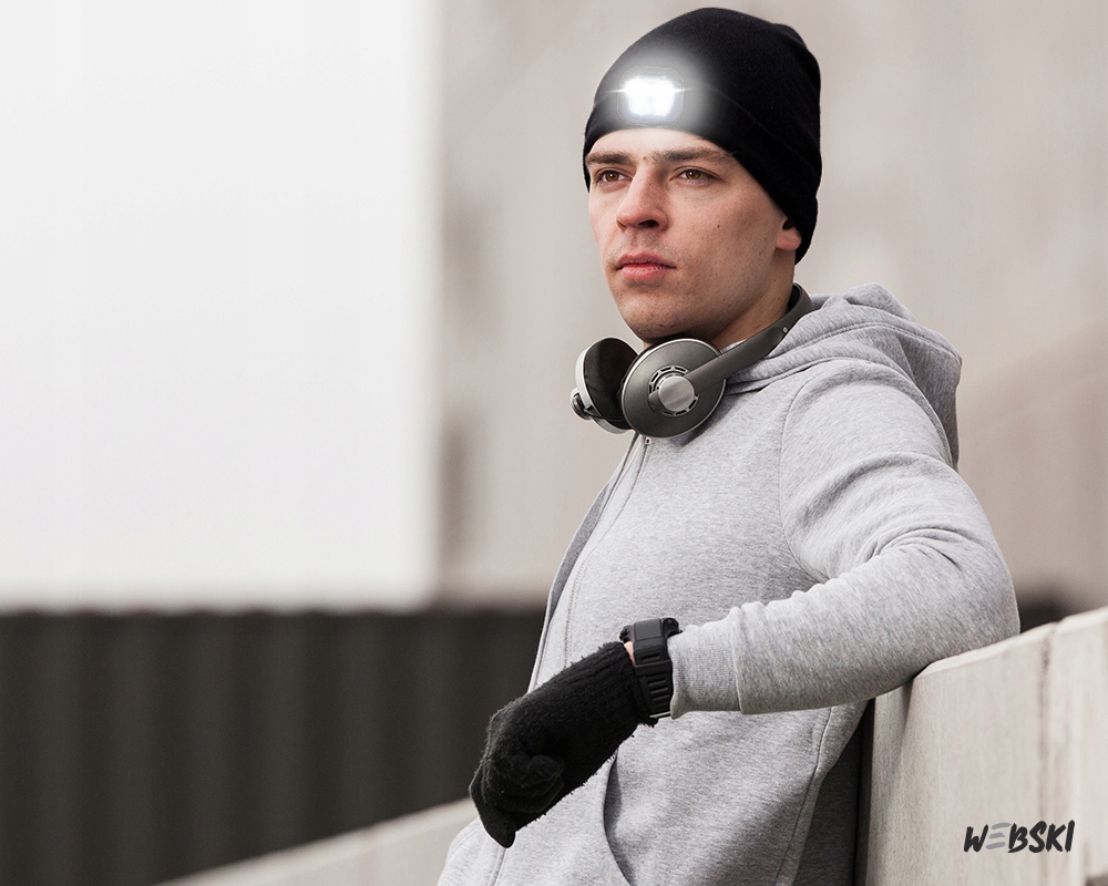 Czapka LED na głowę zimowa jesienna AKUMULATOR USB