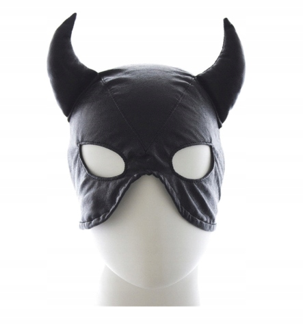 CZARNA MASKA NA TWARZ ROGI BDSM FETYSZ