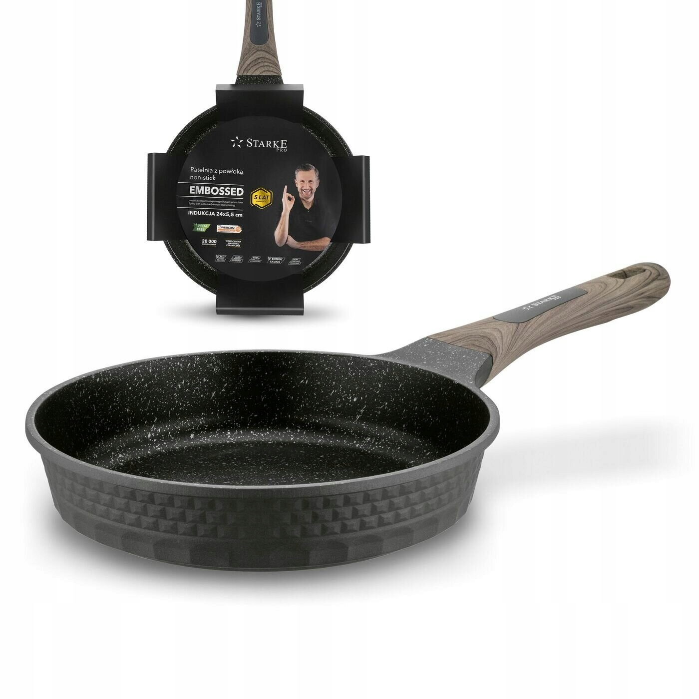 Czarna PATELNIA INDUKCJA GAZ 24cm patelnia BEZTŁUSZCZOWA Embossed Stare Pro
