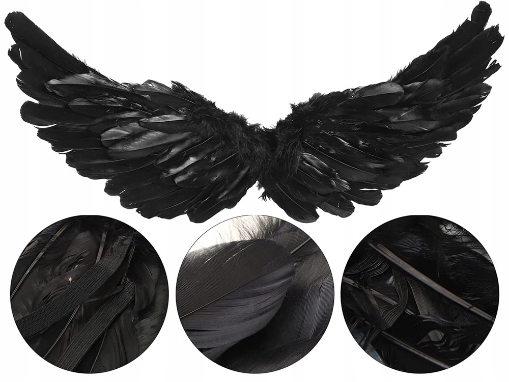 Czarne Skrzydła Anioła z Piór - Przebranie Cosplay na Halloween, Bale i Imp