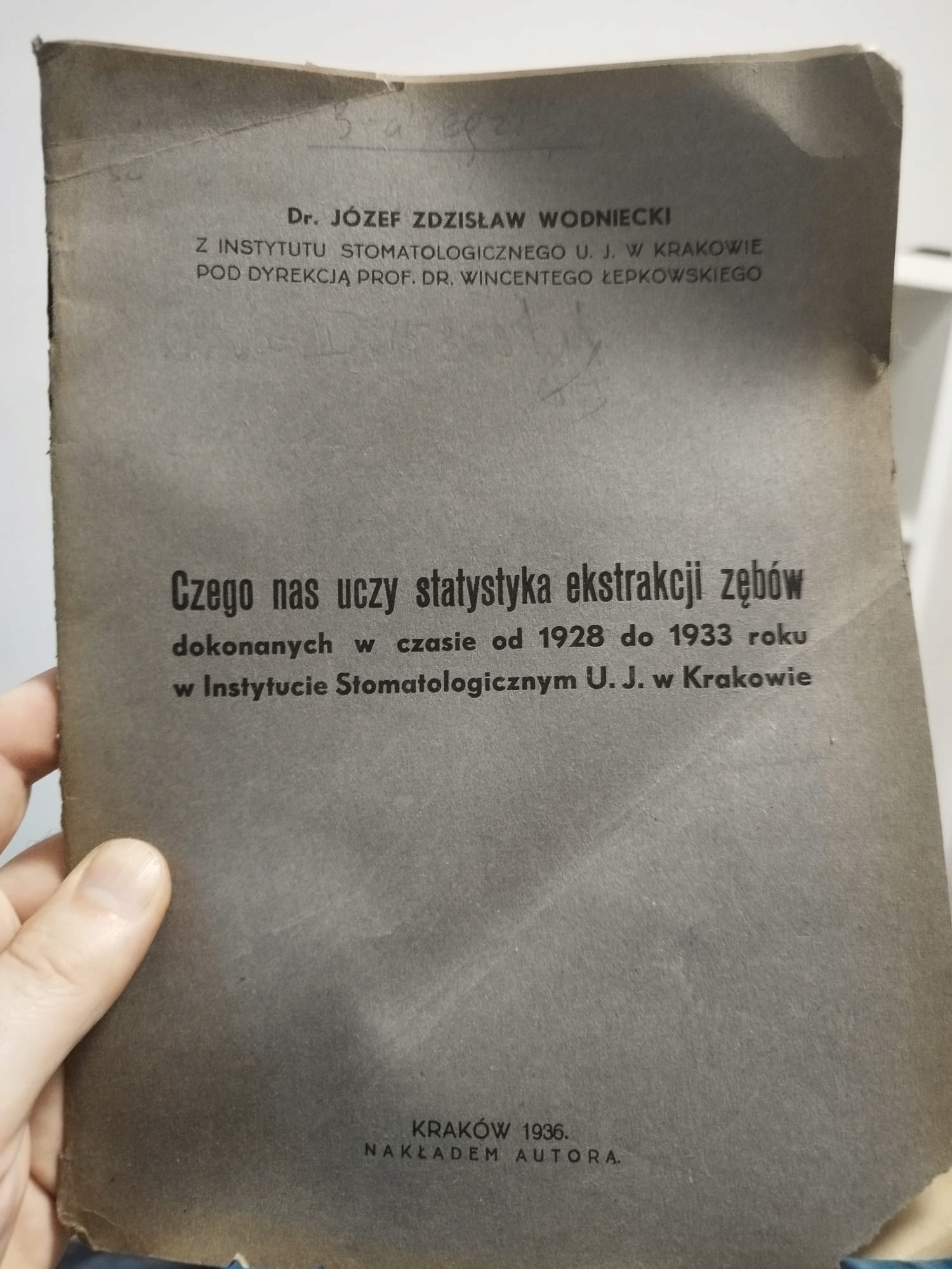 Czego nas uczy statystyka ekstrakcji zębów.. Kraków 1936 dr Józef Wodniecki