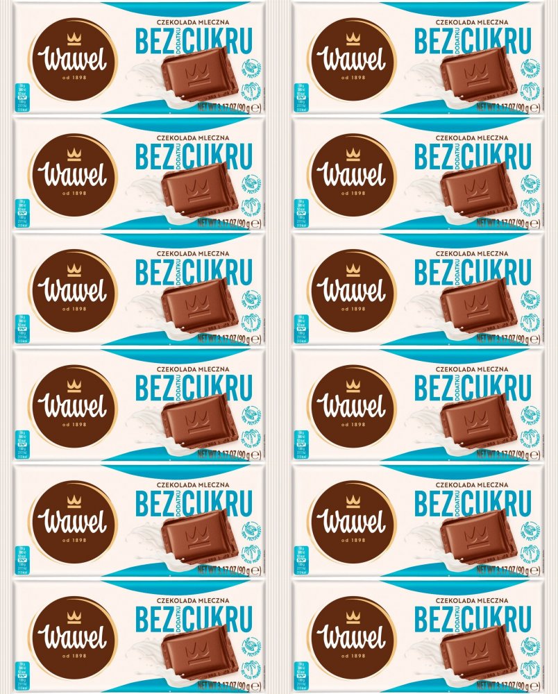Czekolada mleczna bez dodatku cukru Wawel 90g x12
