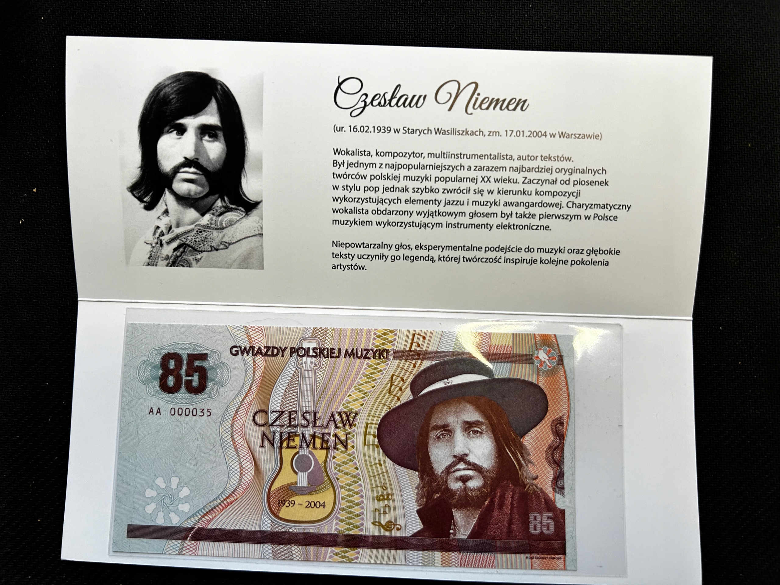Czesław Niemen «Зірки польської музики». Колекційна банкнота Unциркулейтед