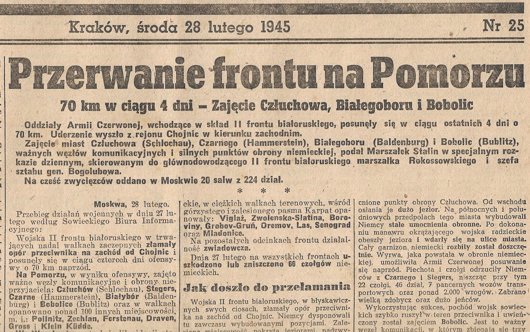 . Статья под названием «Черт возьми, фронт в Померании»Страницы: сканирование представляет его почти все