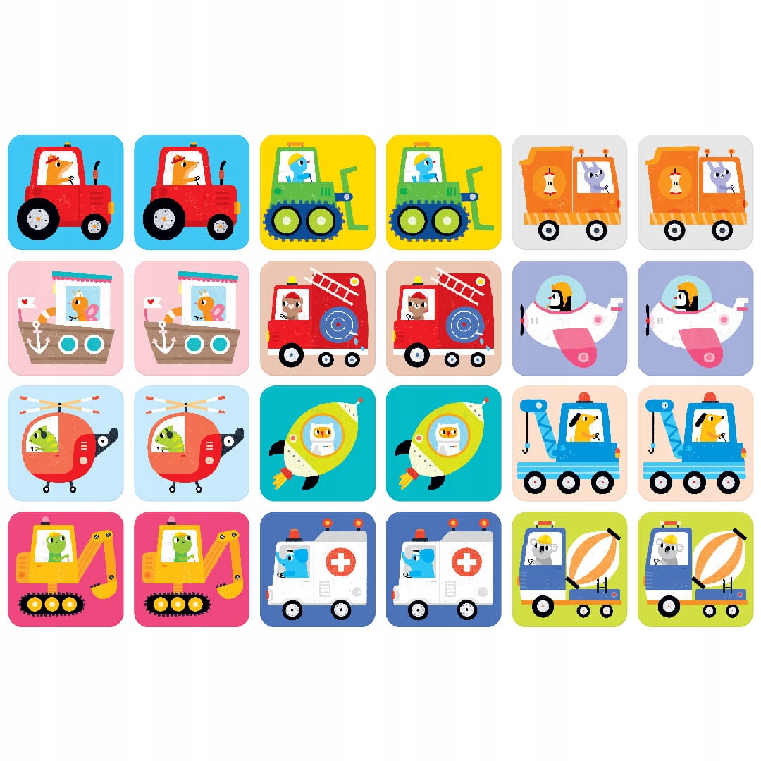 Развлекайтесь вместе разными способами! Разложите непокрытые кусочки и найдите пары. Вы можете сделать это вовремя. Для более сложной версии переверните их лицевой стороной вниз и потренируйте свою память. Вы можете начать с меньшего количества пар и постепенно увеличивать сложность игры. Расскажите о том, что вы видите на картинках, поиграйте со звуками автомобиля, назовите цвета. А может быть, вы придумаете свою историю о героях иллюстрации? В комплект входит руководство, полное идей для образовательных развлечений.