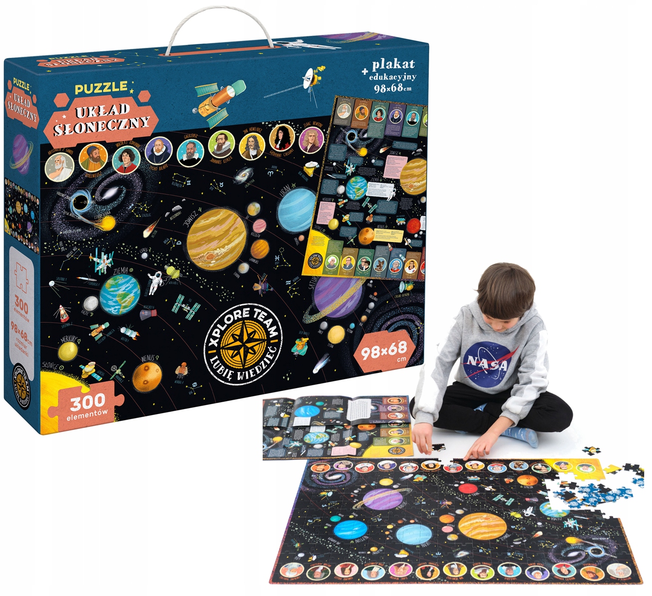 Огромный, детализированный и прекрасно иллюстрированный пазл с изображением самых известных небесных тел, космических аппаратов, ученых и исследователей Солнечной системы. Собирать головоломки — это отличное развлечение, которое одновременно стимулирует воображение и страсть. Развивающий набор станет подарком для школьника, интересующегося (универсальным) миром, и отлично подойдет как семейный пазл.