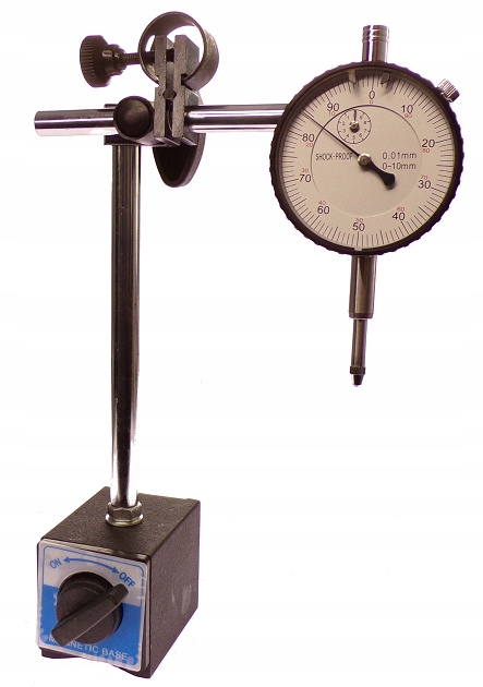 CZUJNIK ZEGAROWY 0-10mm 0,01mm DOKŁADNY CZYTELNY ZEGAR DO SPRAWDZANIA BICIA + STATYW PODSTAWA MAGNETYCZNA CZUJNIKA ZEGAROWEGO