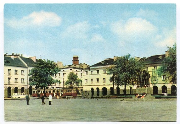 ЛОДЗЬ :: Фрагмент Старой Рыночной площади с памятником Юлиану Мархлевскому ::: старая открытка, не бывшая в обращении, на обороте небольшие пометки