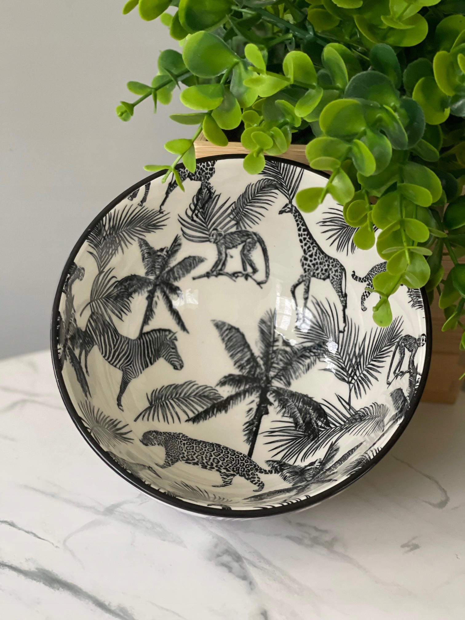 Белая посуда все чаще уступает место цветной или узорчатой посуде. Любите принты с мотивами джунглей? Эта миска станет интересным дополнением коллекции. Они идеально подходят для подачи супа, фруктовых салатов и т. д.