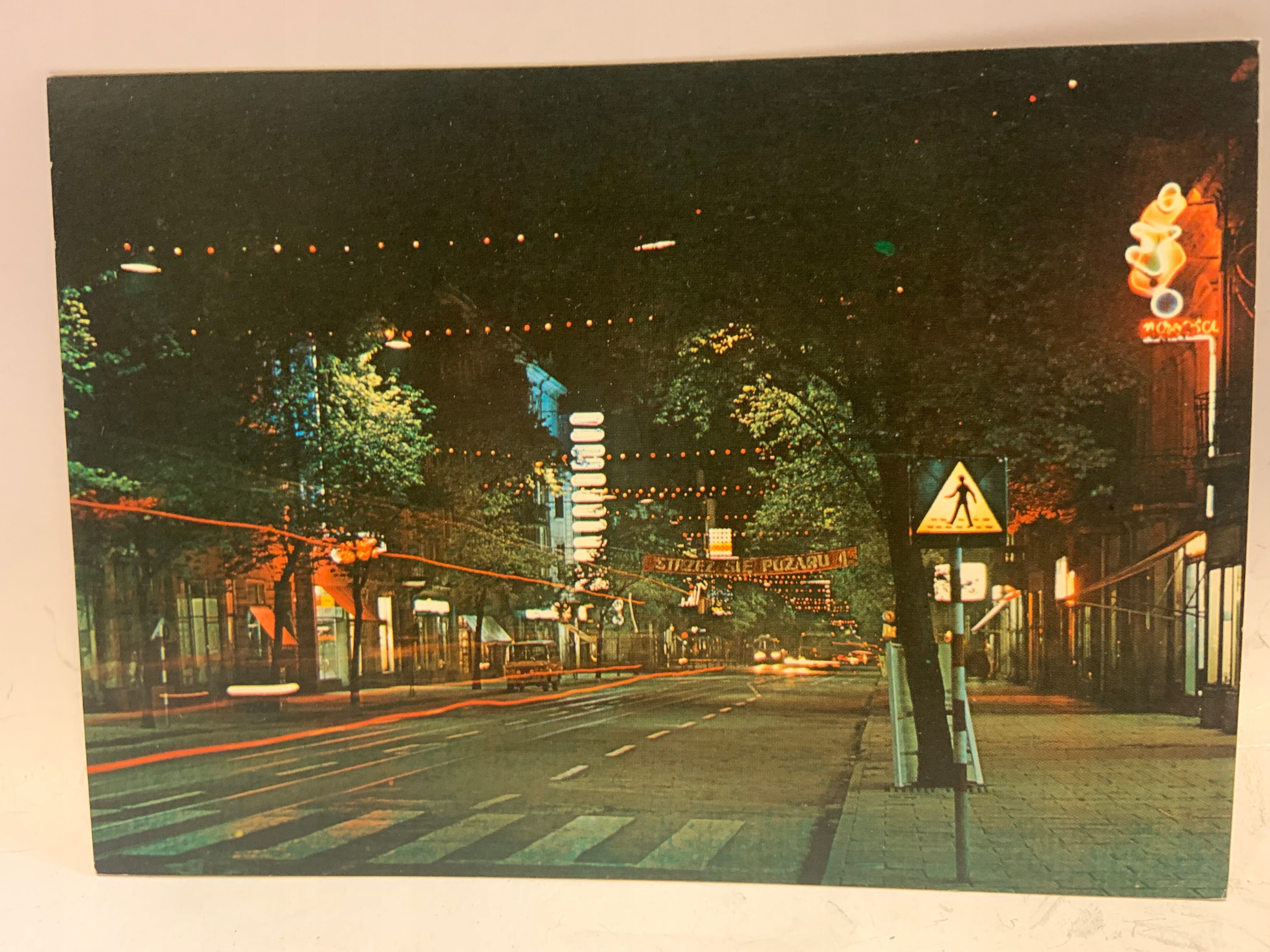 ŁÓDŹ PIOTRKOVSKA ВУЛИЦЯ ВНОЧІ ЛИСТІВКА PRL 1979