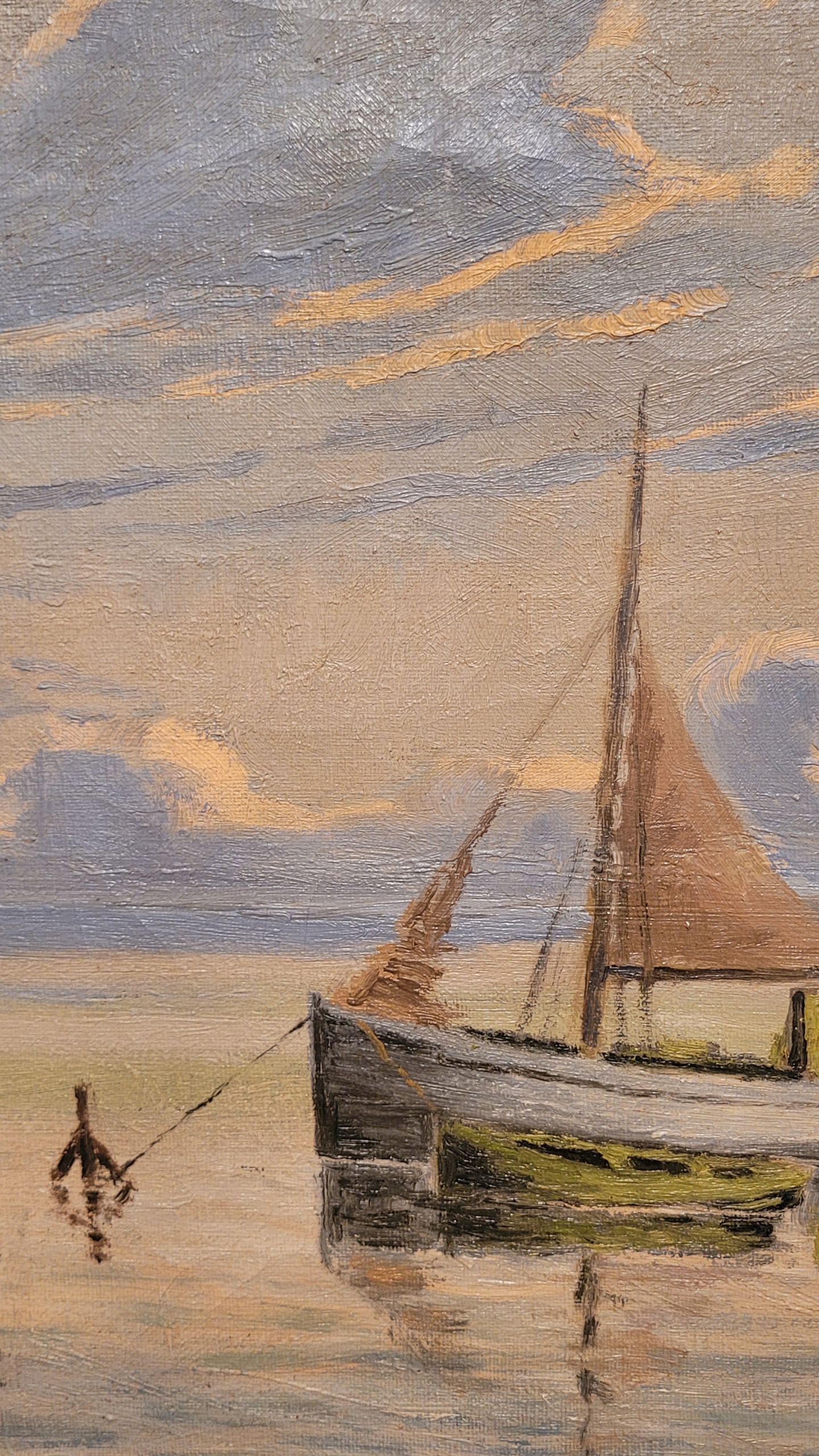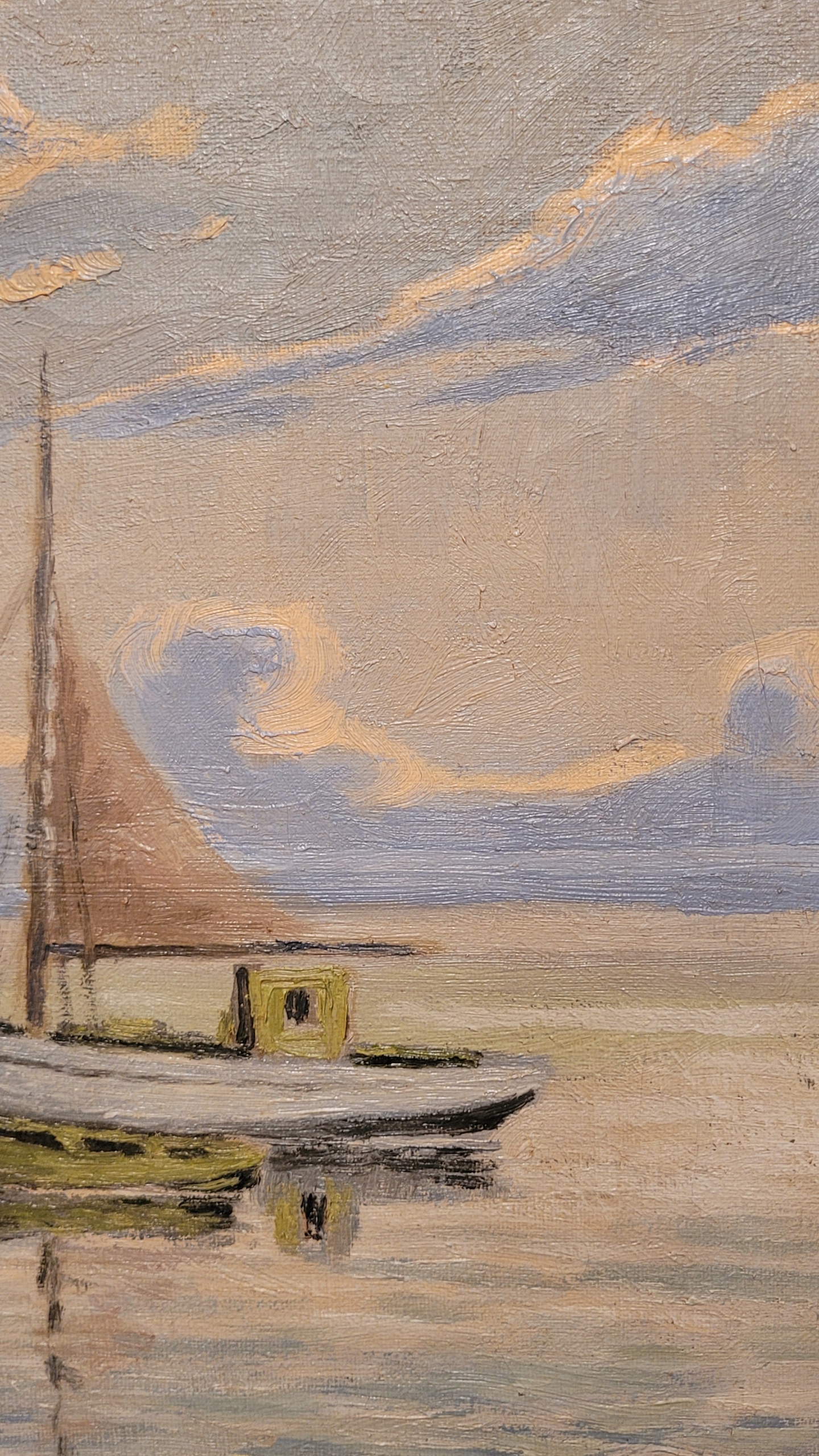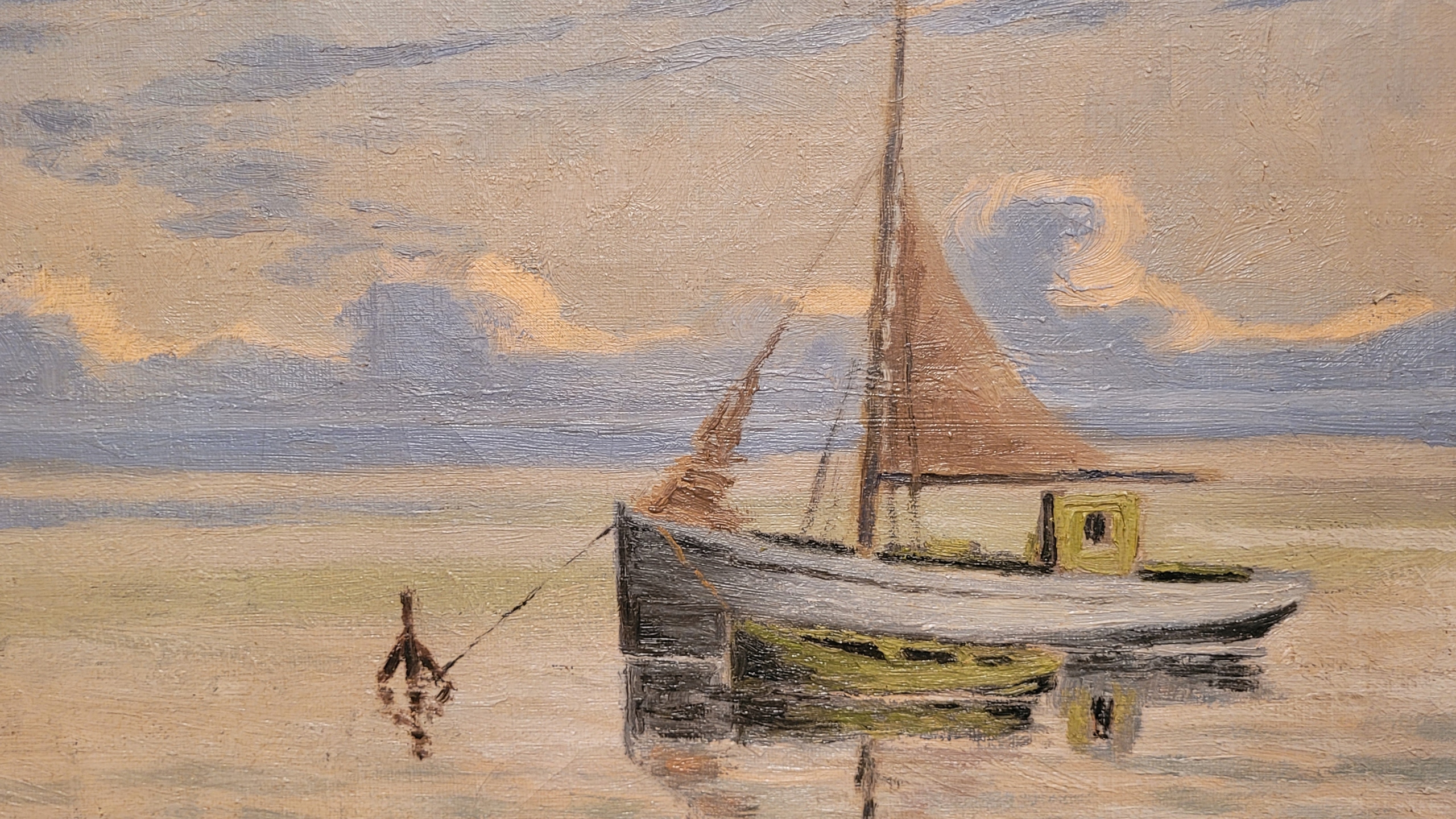 «Лодзи с парусом», подписал нефтяную картину 1947 года.