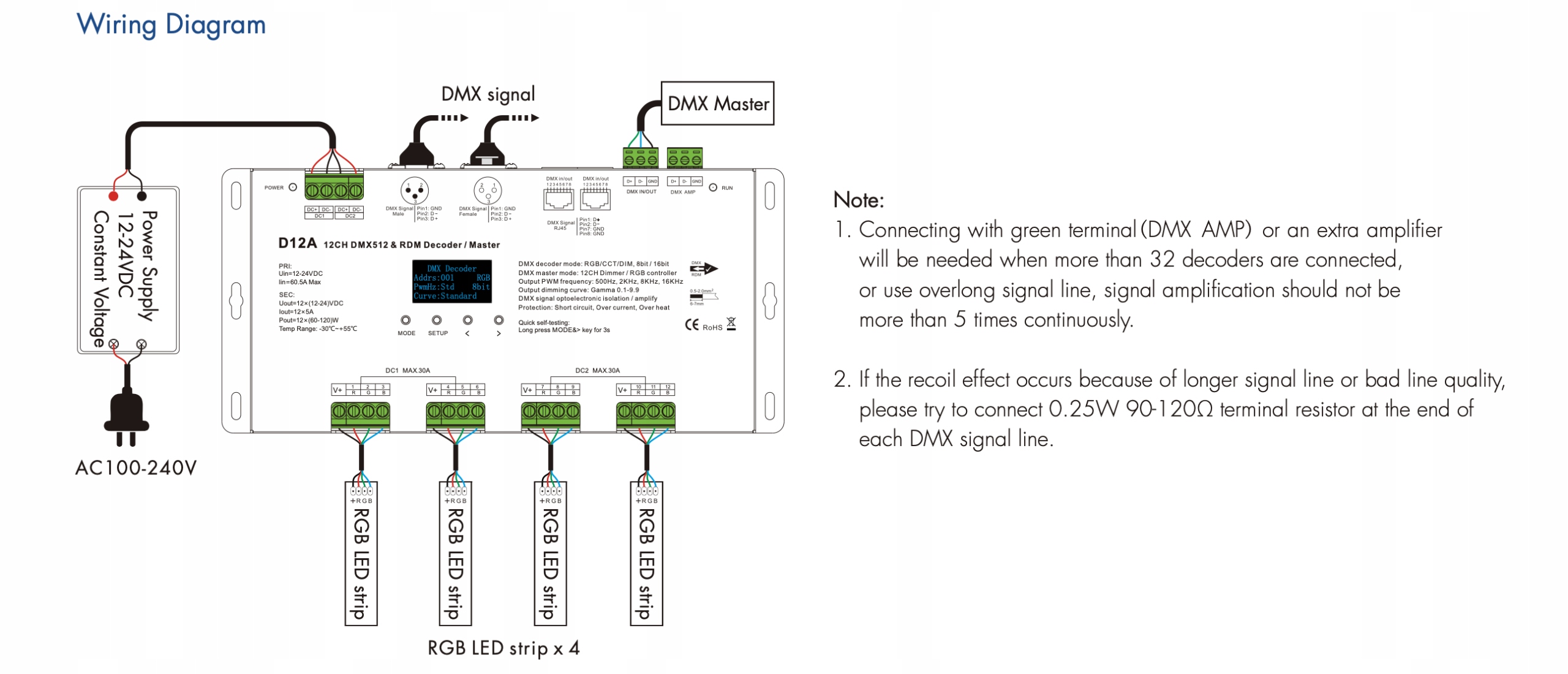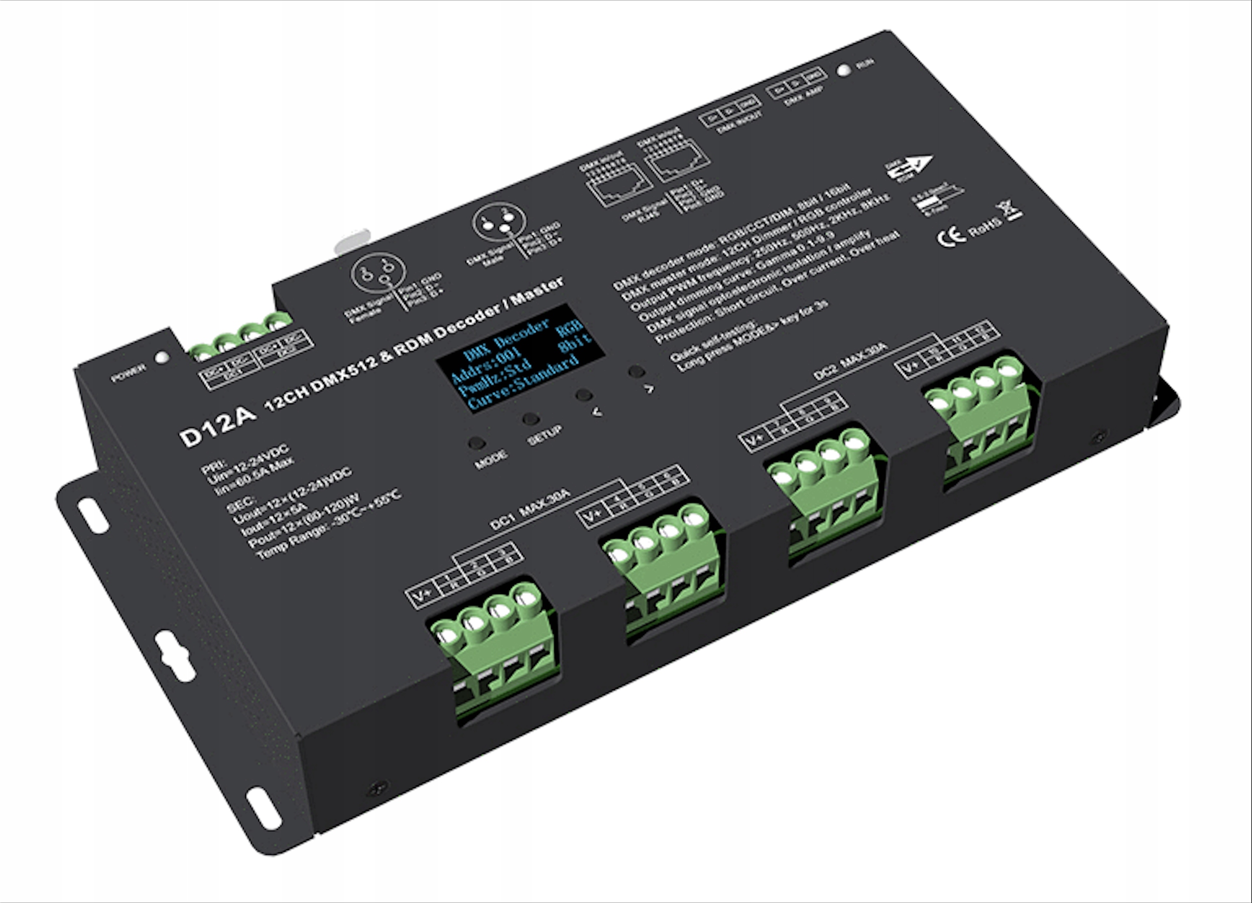 Декодер d12a используется для управления многоорозованным светодиодным освещением с использованием протокола DMX512. Декодер, функция rdm