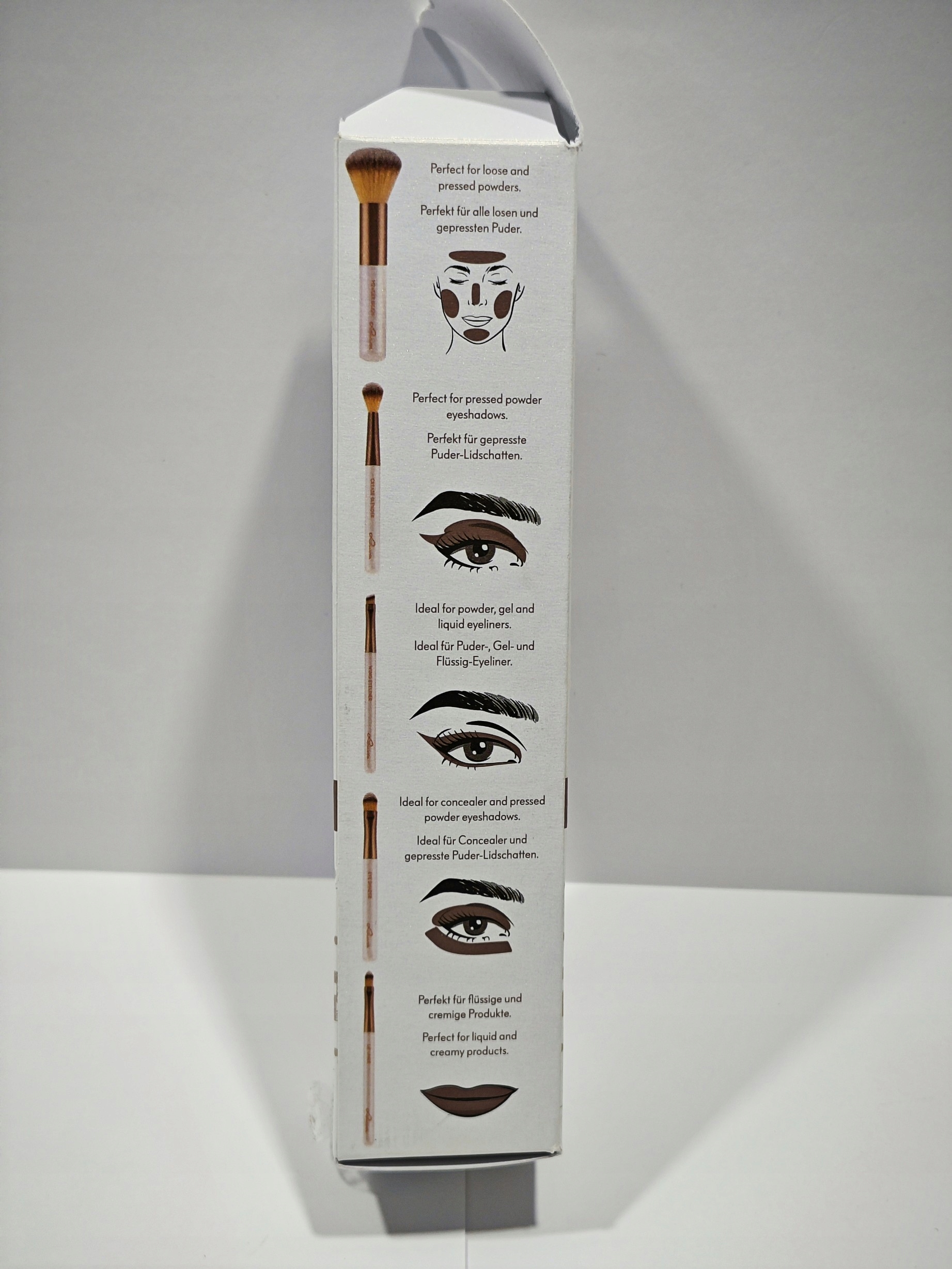 - Деликатные щетинки: щетки были разработаны для обеспечения комфорта нанесения и не раздражали кожу.