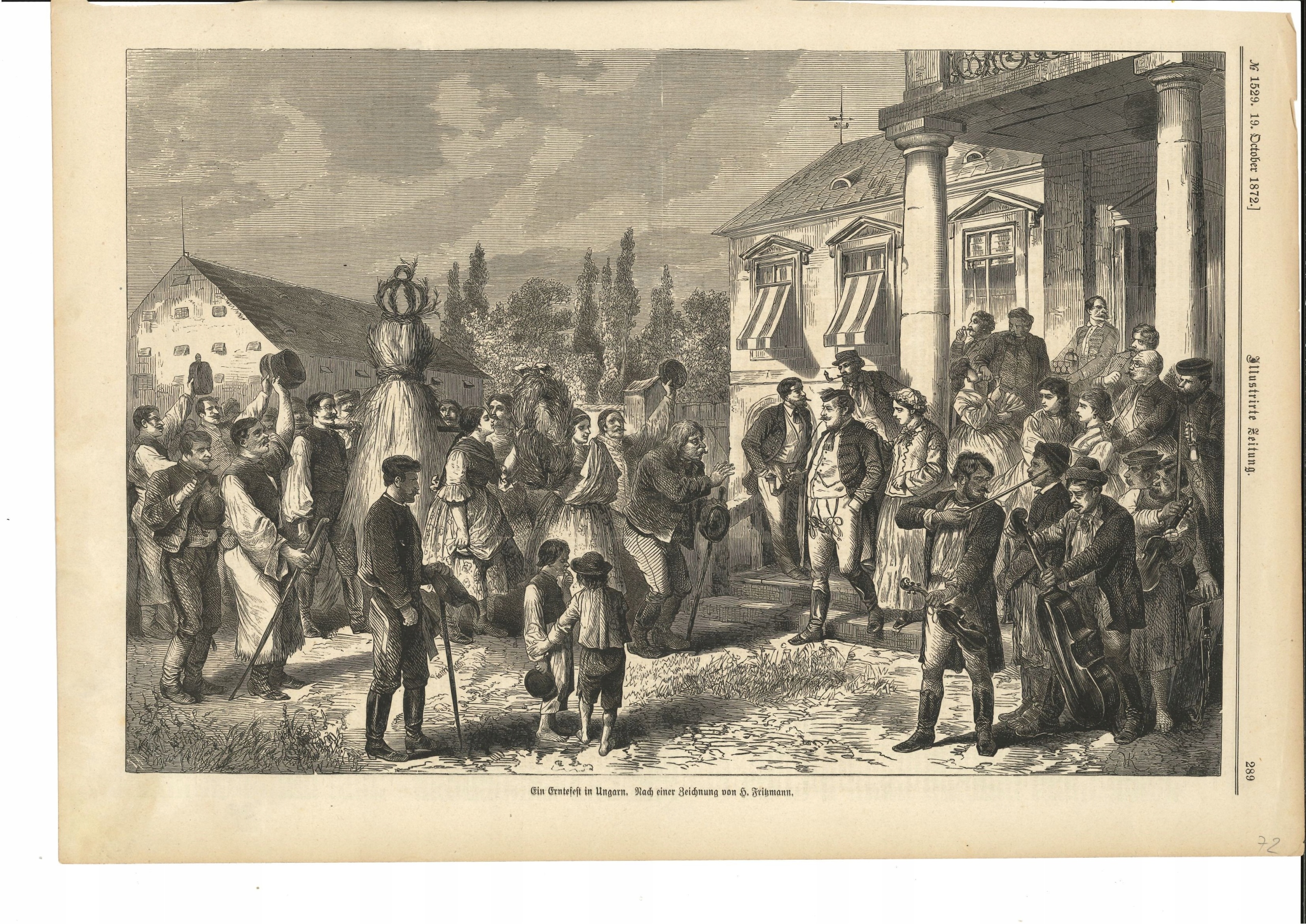 D521 ДЕРЕВЯННАЯ РЕЗКА ПРИМЕРНО 1900 ГОДА ПРАЗДНИК УРОЖАЯ В ВЕНГРИИ