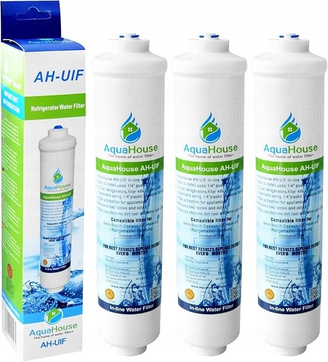 - Внешние водные фильтры Aquahouse Ah-uif совместимы с холодильниками, в которых использовалась внешняя вставка водяного фильтра, который используется в линии с водоснабжением трубы к холодильнику с помощью трубы с помощью и ¼ «Труба.