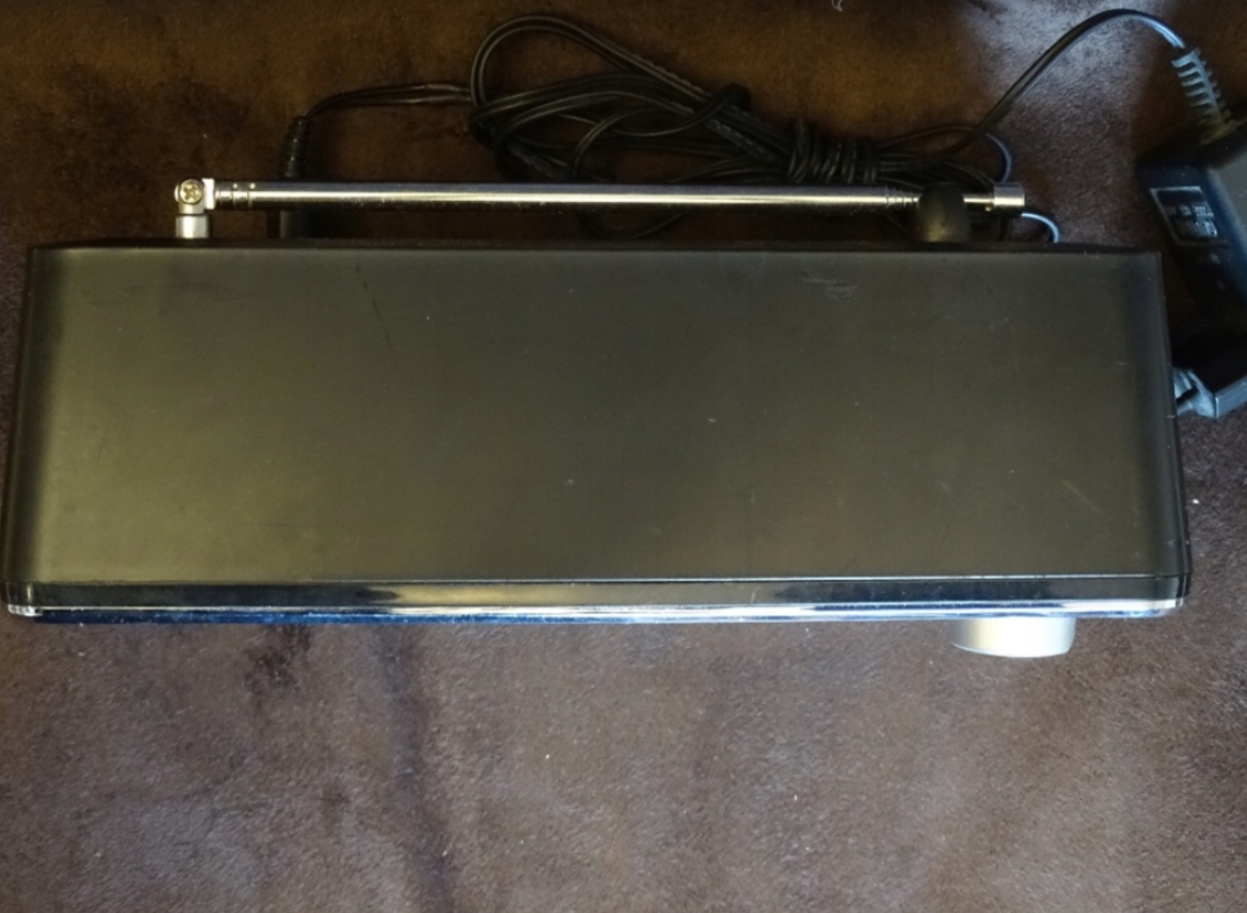 Небольшой, портативный цифровой радио FM/dab/dab/dab+ с часами часов/будильника. Он может быть включен из четырех батарей АА и из сети 230 В, используя прикрепленный источник питания. Благодарность питания не является оригинальным и имеет измененную пробку (чтобы соответствовать радио). Все работает без проблем. К сожалению, отображаемые сообщения на немецком языке.