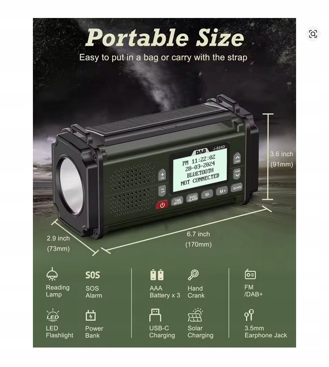 Dab Radio+ FM Bluetooth Disceer 1000mh Powerban h1> Аварийный радиоподавляющий радиопрофивер для солнечной энергии h1> USB-C Ручная зарядка
