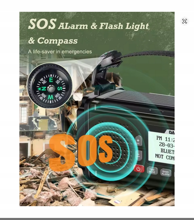 7 погодных станций NOAA: Помородовое радио включает в себя 7 станций NOAA, обеспечивая прогнозы погоды и уведомления о погодных бедствиях в вашем районе. Без доступа к Интернету, не бойтесь! Это радио NOAA гарантирует, что вы будете в курсе погодных условий, вы всегда будете готовы к чрезвычайным ситуациям. Это не только радио для удовольствия, но и для безопасности вас и ваших близких. (Примечание: нет автоматических уведомлений о оповещениях NOAA.) Это надежный мощный банк для резервного питания. Когда батарея закончится в случае сбоя питания или когда вы находитесь на улице, вы можете использовать его, чтобы немедленно зарядить телефон, чтобы держать его в свежем воздухе. В чрезвычайной ситуации, в чрезвычайной ситуации, нажимайте и удерживайте кнопку «Соус», радиосвязи выпустит соус вспышкой, которую можно вытащить. Внимание других к быстрой помощи.