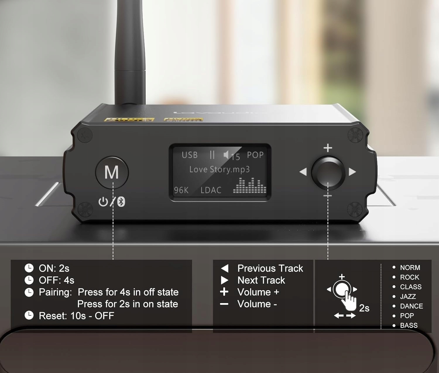 1mi DS220 Hi-Res Bluetooth-приемник для домашней стереосистемы с LDAC, HiFi Bluetooth 5.1 Аудио-адаптер с аудиофильным DAC APTX HD, приемник Bluetooth для приемника для AV-приемника/ AV-усилителя, OLED EQ-дисплей h1>