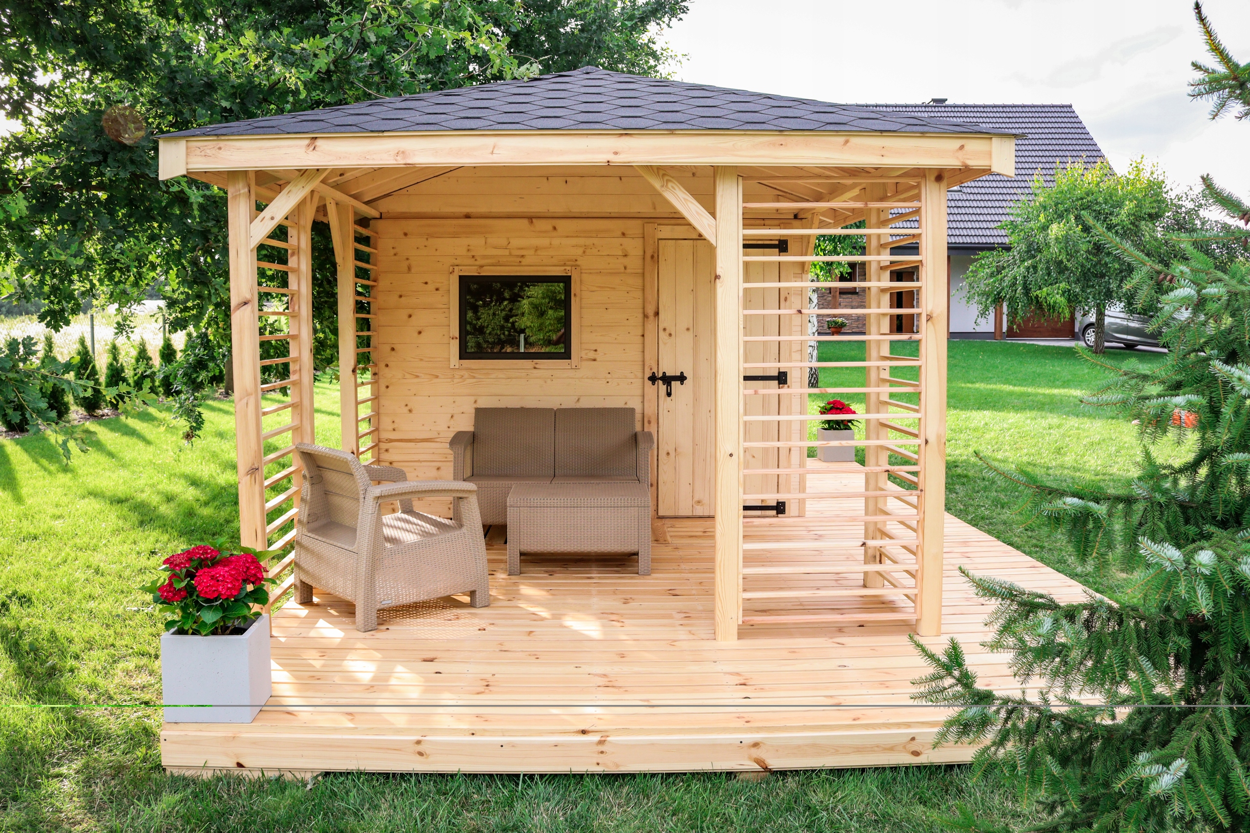 В наши садовые домики вы можете вносить свои изменения, благодаря которым вы легко адаптируете дом под свой сад и участок. Вы можете менять места дверей, окон и пропорции дома. Мы польский производитель садовых домиков, дач и беседок.