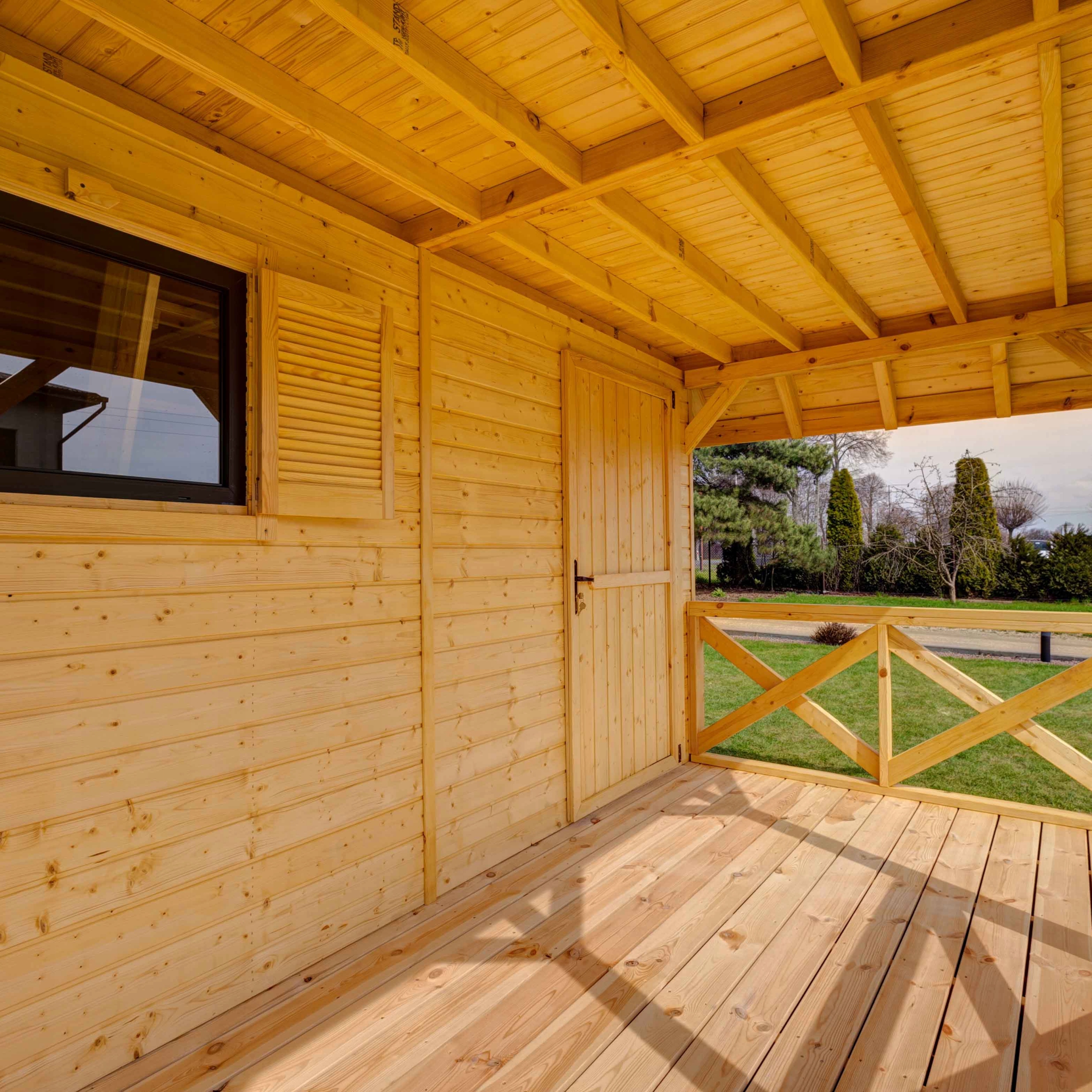 - Толщина обшивки крыши: 20 мм. >
