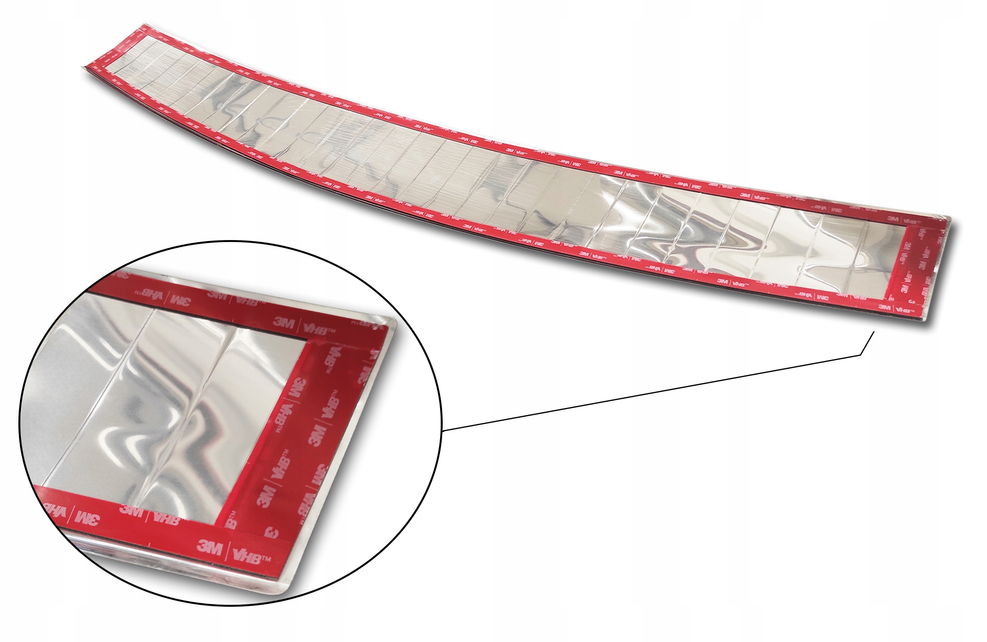 Накладка из полированной нержавеющей стали. В нем уже есть двусторонний очень прочный скотч.