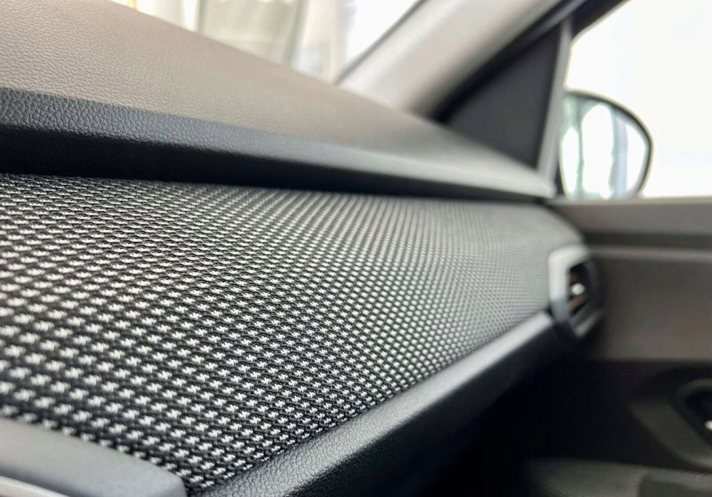 Черный материал обивка с геометрическими узорами по бокам, апельсиновая строчка