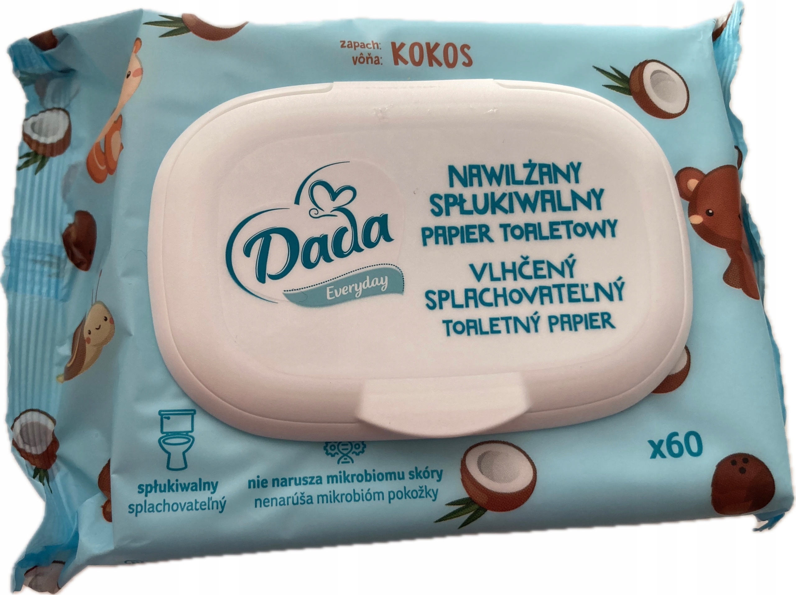 промойте, увлажненную туалетную бумагу дада с приятным кокосовым ароматом с жидкостью с ромашником, аллантоином и пантенолом, эффективно и мягко очищает и питает даже самые чувствительные части тела. В то же время это не влияет на микробиом кожи, составляющий естественный защитный барьер против внешних факторов.